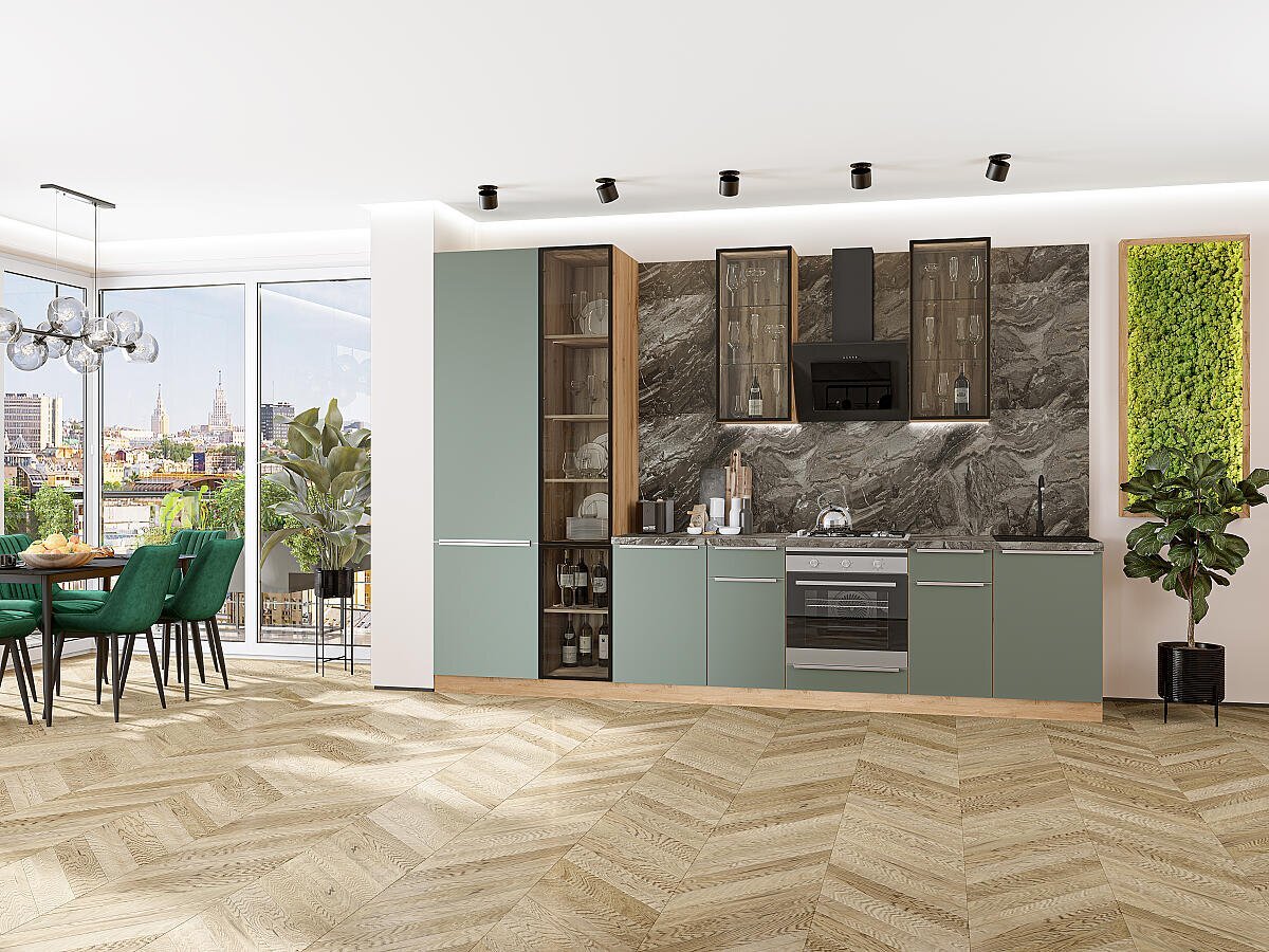 Прямая модульная кухня Фьюжн-08 Silky Mint - Дуб Вотан 2340*3400*600