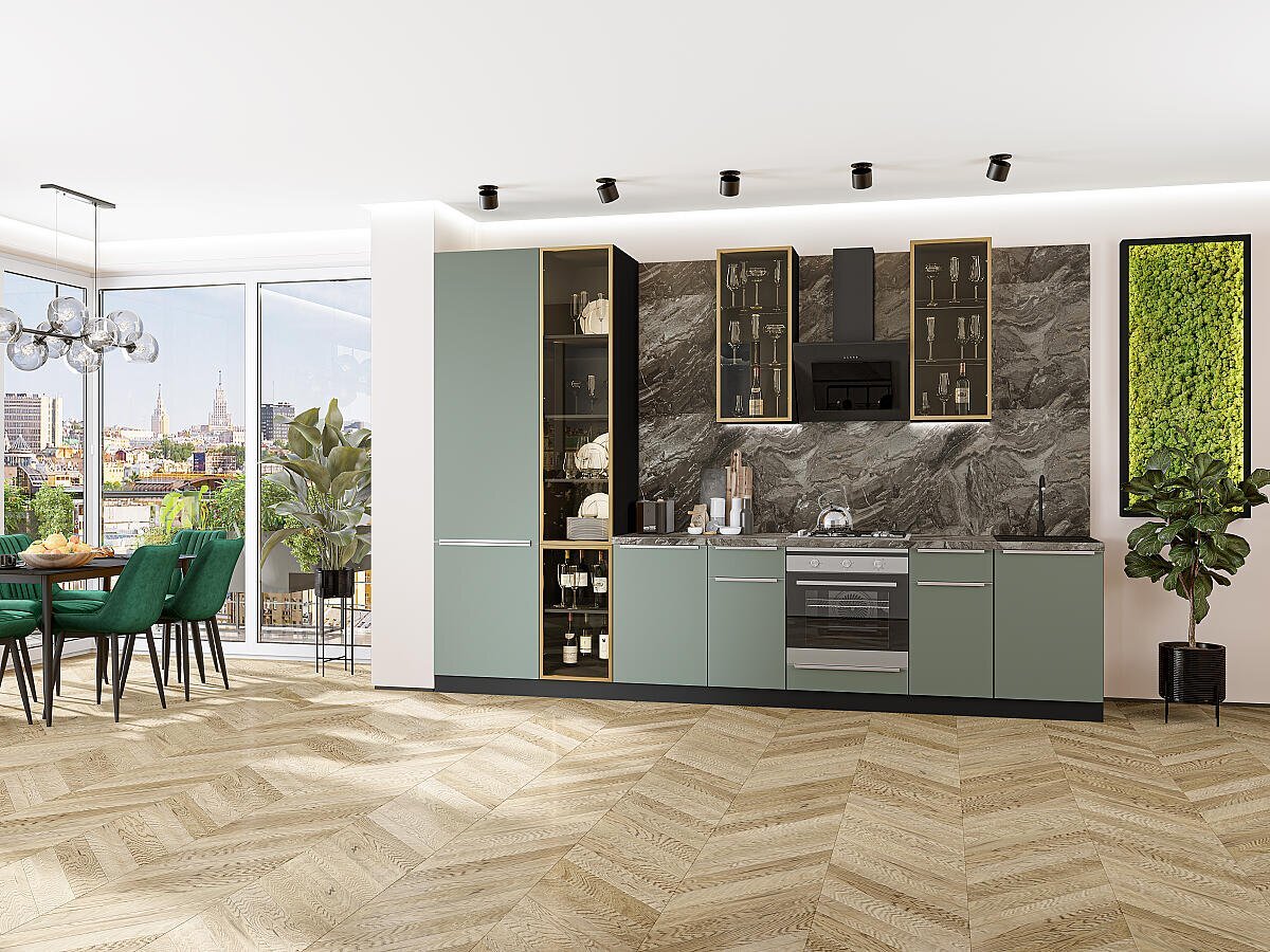 Прямая модульная кухня Фьюжн-08 Silky Mint - Graphite 2340*3400*600