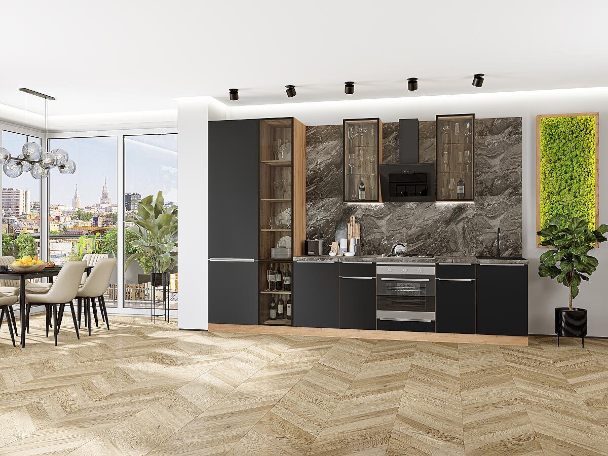 • Прямая модульная кухня Фьюжн-08 Stormy Silk - Дуб Вотан 2340*3400*600