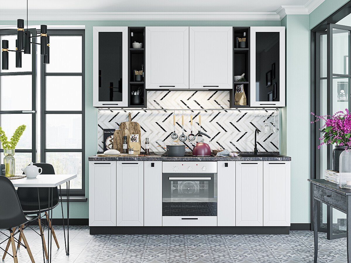 Прямая модульная кухня Глетчер-01 Айленд Силк - Graphite 2340*2200*600