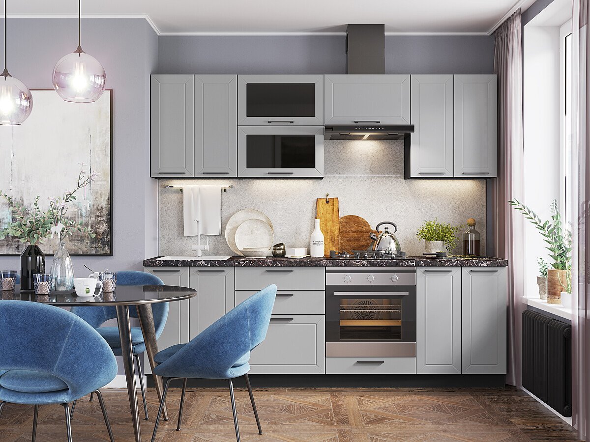 Прямая модульная кухня Глетчер-02 Гейнсборо Силк - Graphite 2140*2400*600