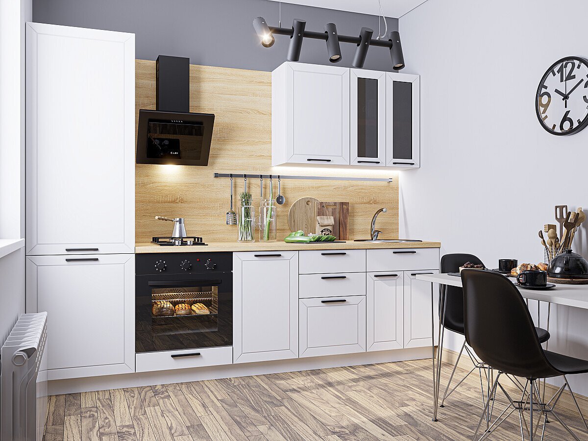 Прямая модульная кухня Глетчер-04 Айленд Силк - Дуб Вотан 2140*2700*600