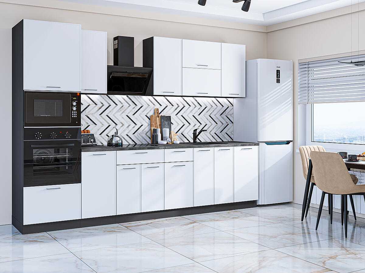 Прямая модульная кухня Квадро-01 Белый - Graphite 2140*3000*600