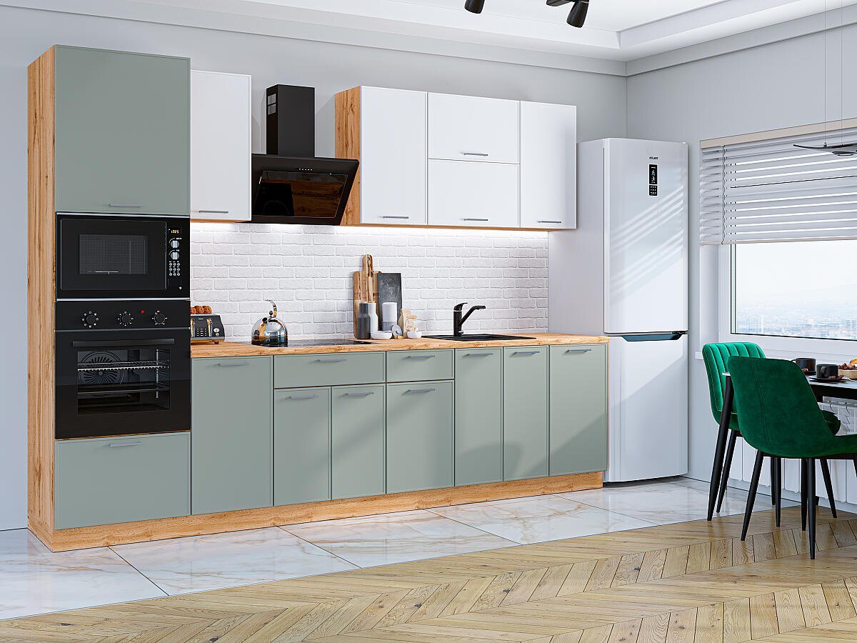 Прямая модульная кухня Квадро-01 Белый/Аквамарин - Дуб Вотан 2140*3000*600