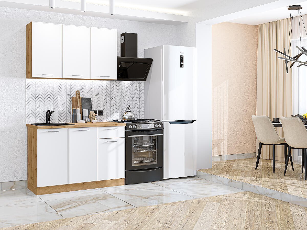 Прямая модульная кухня Квадро-03 Белый - Дуб Вотан 2140*1200*600