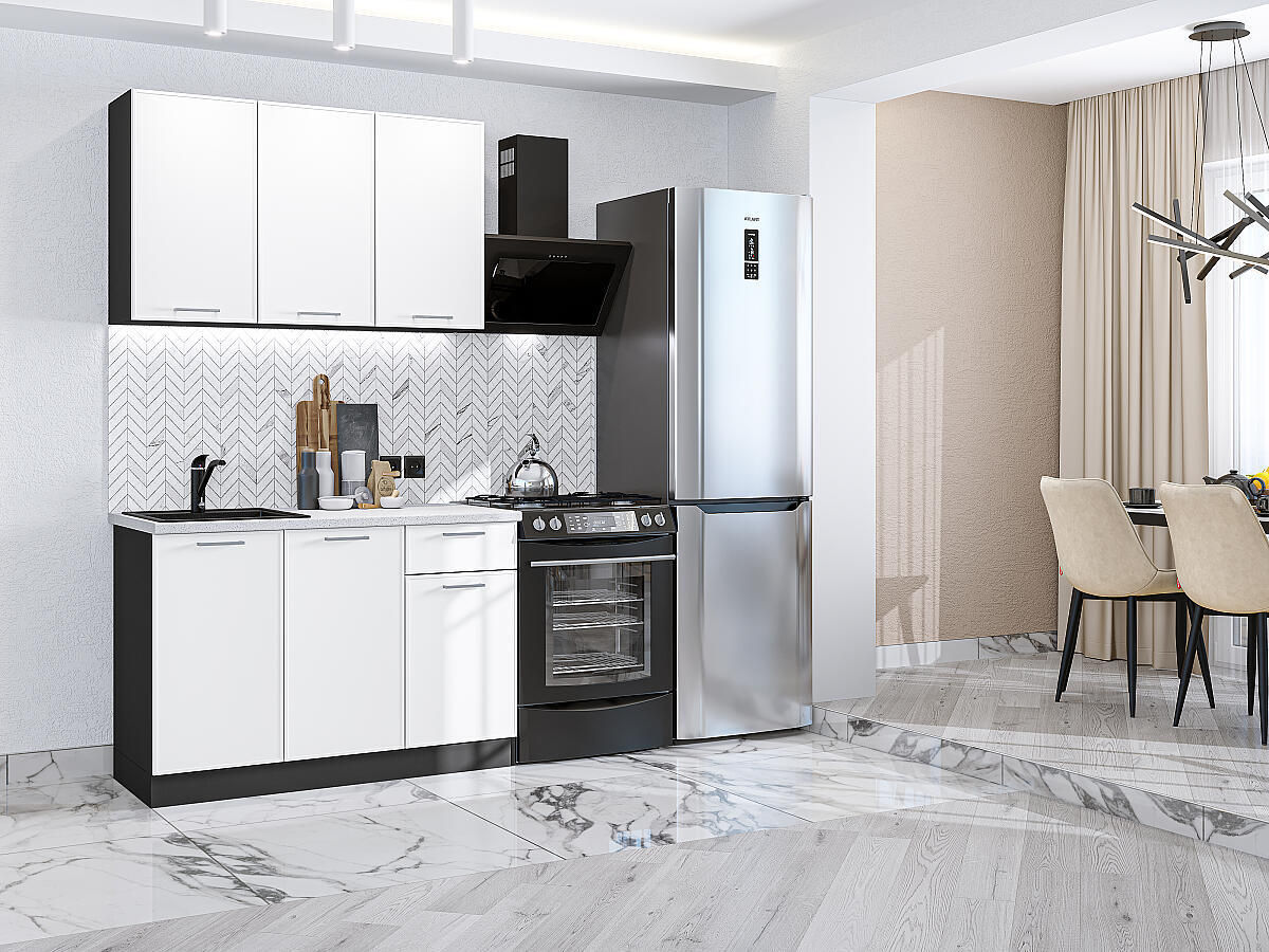 Прямая модульная кухня Квадро-03 Белый - Graphite 2140*1200*600