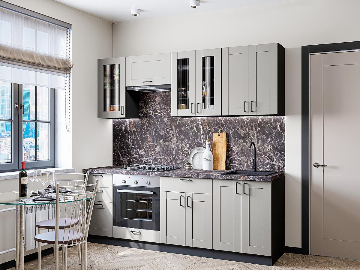 Прямая модульная кухня Лофт-01 Grey Silk - Graphite 2140*2200*600