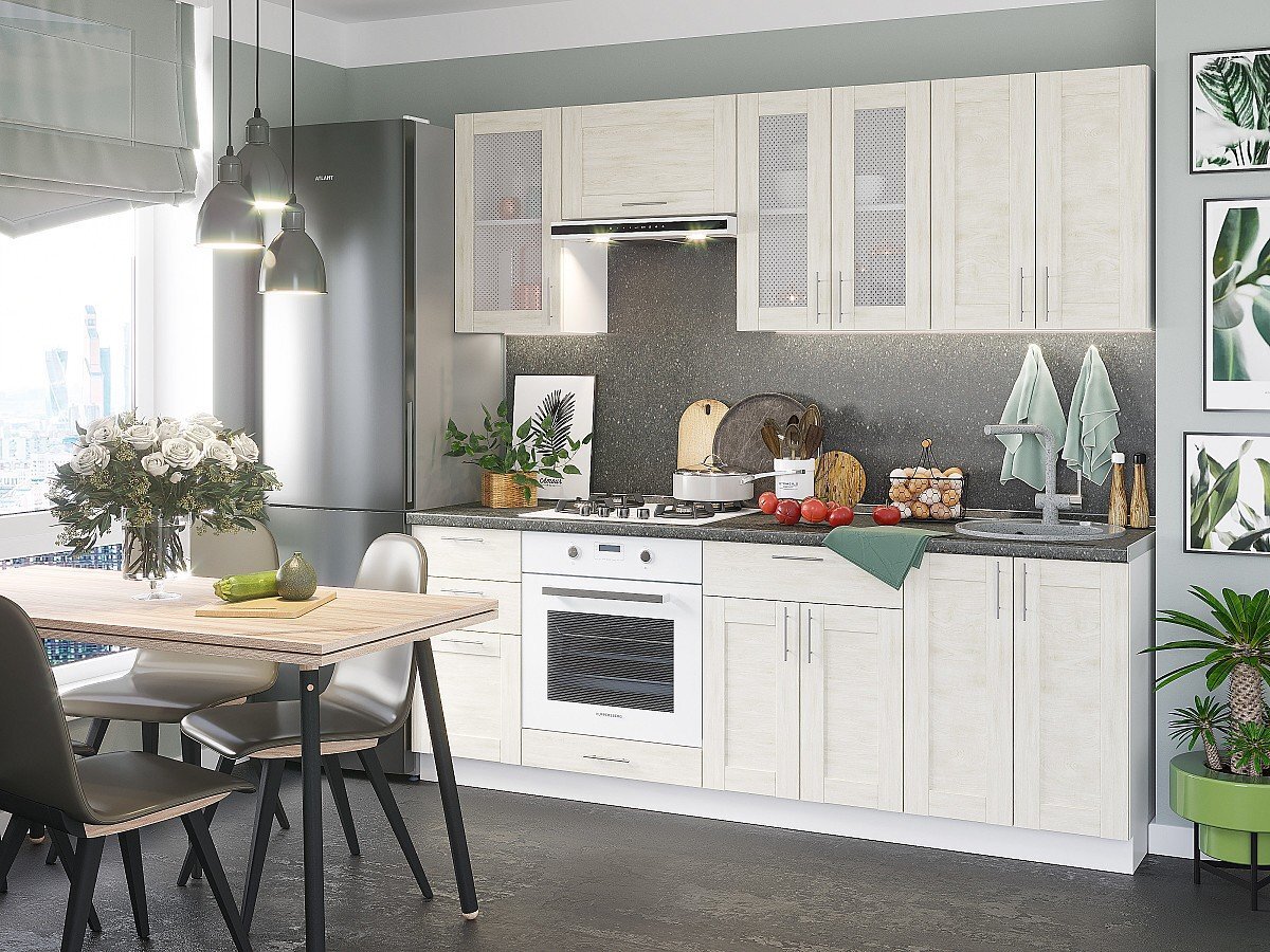 Прямая модульная кухня Лофт-01 Nordic Oak - Белый 2140*2200*600
