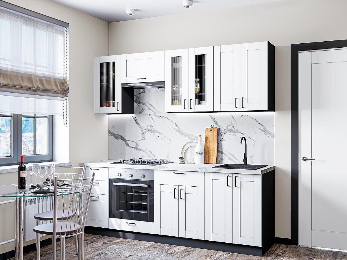 Прямая модульная кухня Лофт-01 White Silk - Graphite 2140*2200*600