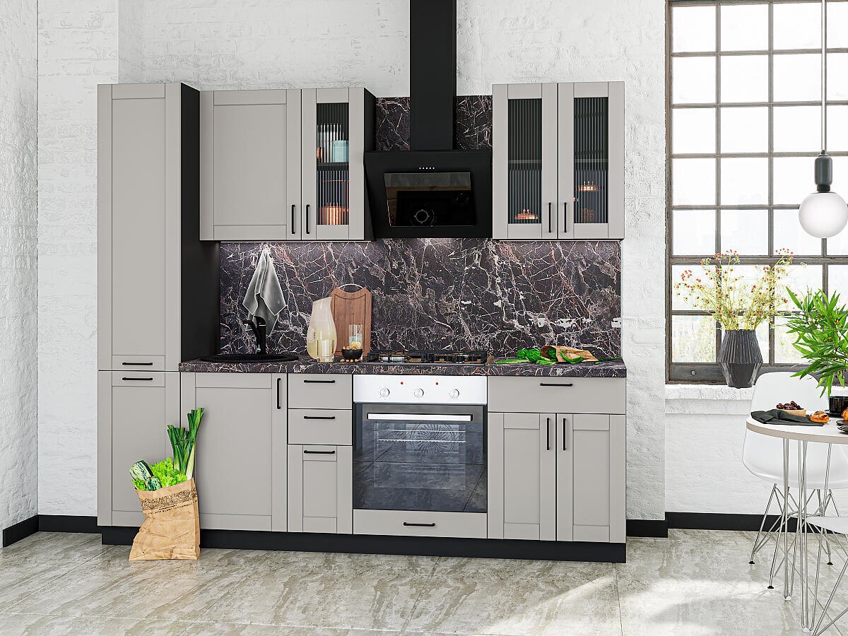 Прямая модульная кухня Лофт-02 Grey Silk - Graphite 2140*2400*600
