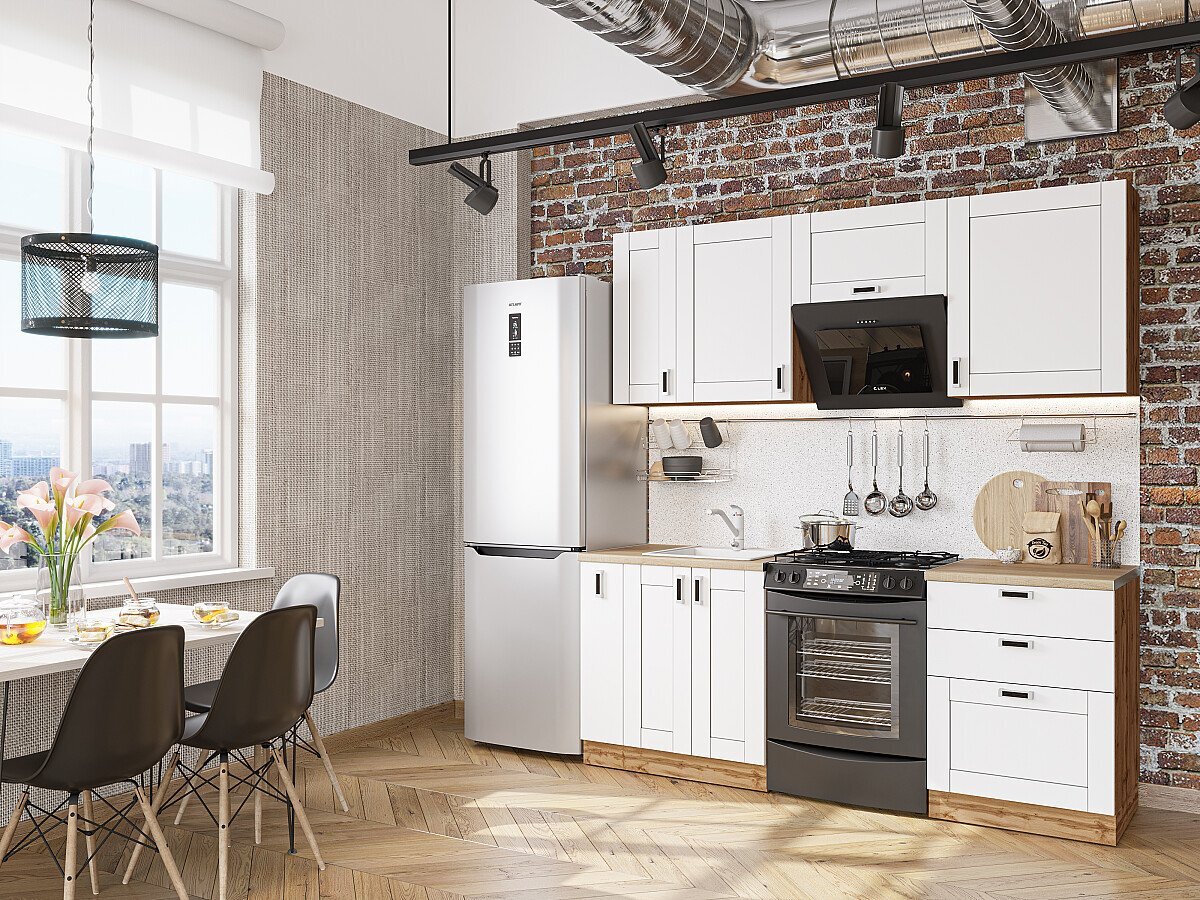 Прямая модульная кухня Лофт-05 Super White - Дуб Вотан 2140*2000*600