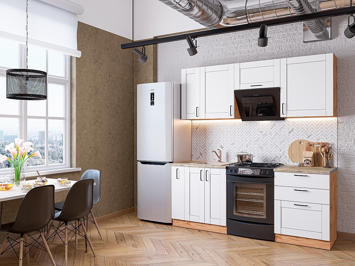 Прямая модульная кухня Лофт-05 White Silk - Дуб Вотан 2140*2000*600