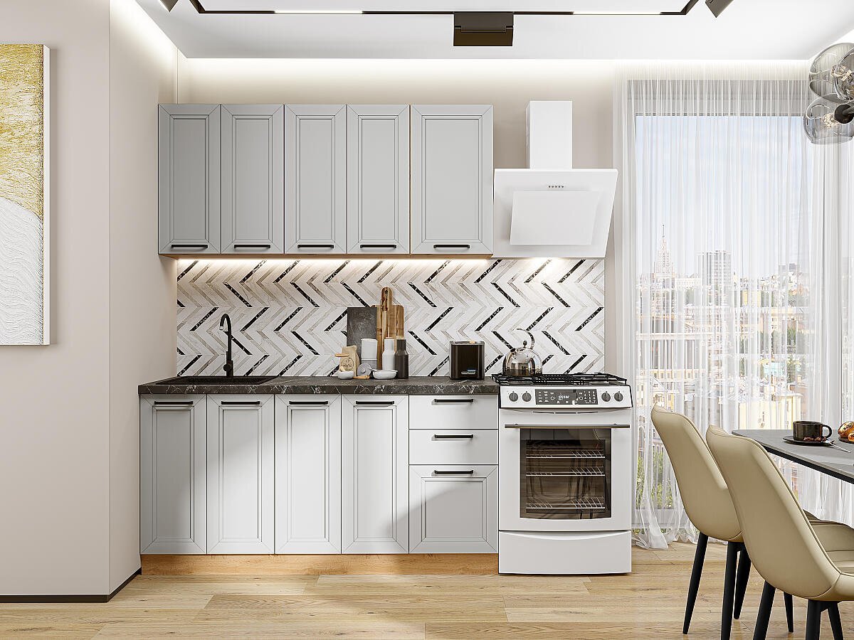Прямая модульная кухня Нео-01 Grey Silk - Дуб Вотан 2140*1600*600