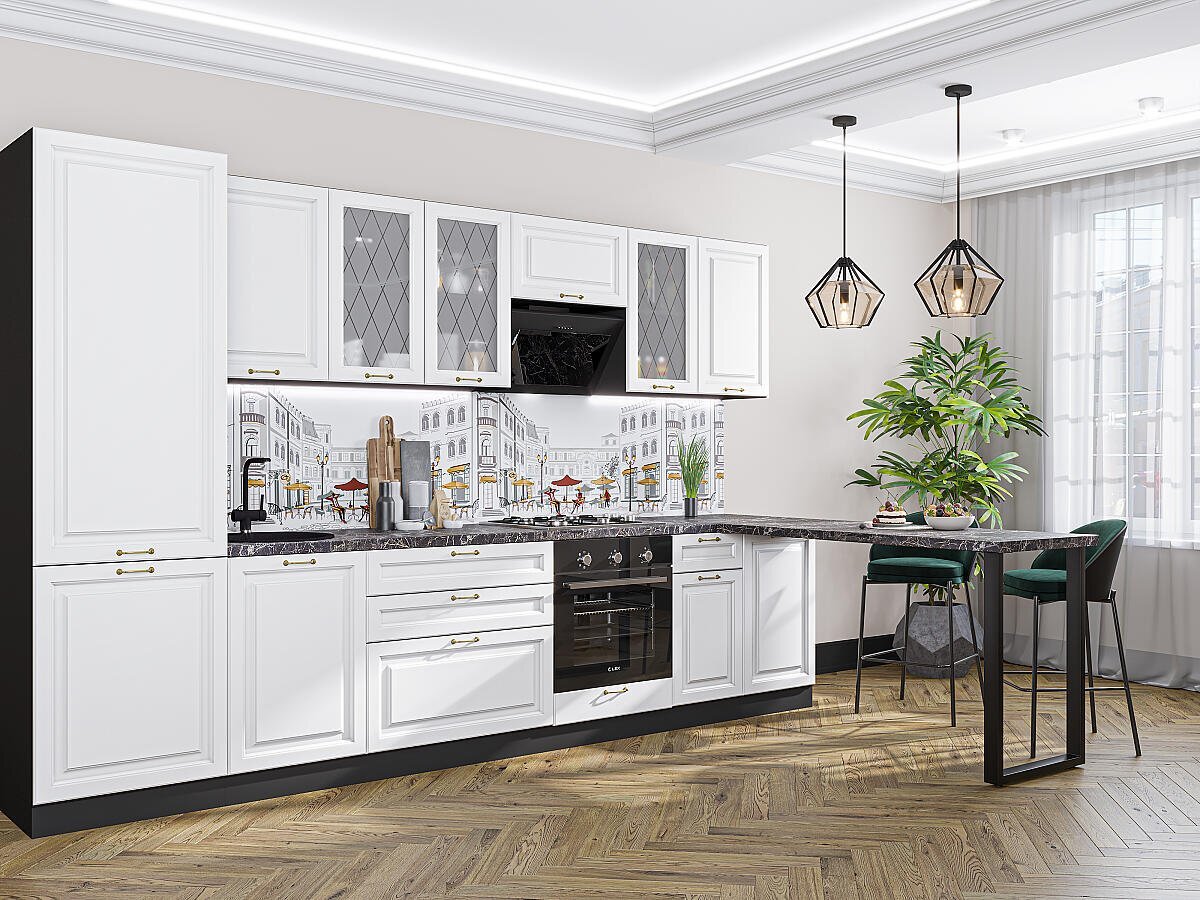 Прямая модульная кухня Ницца-02 Белый - Graphite 2140*3300*600