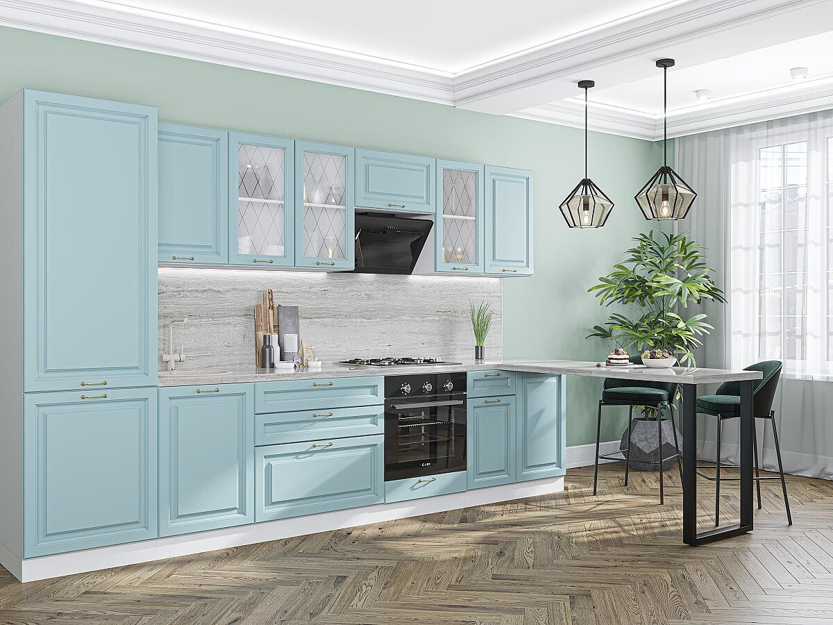 Прямая модульная кухня Ницца-02 Голубой - Белый 2140*3300*600