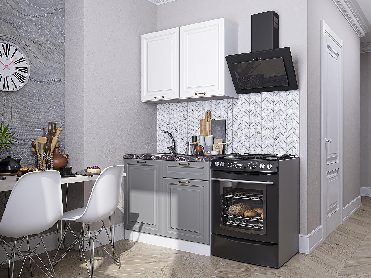 Прямая модульная кухня Ницца-05 Белый/Графит - Белый 2140*1000*600