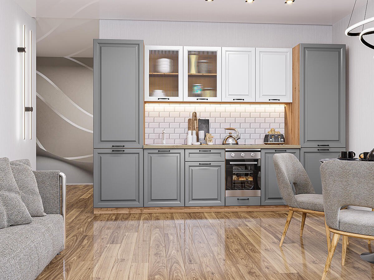 • Прямая модульная кухня Ницца Royal-01 Blanco/Magnum - Дуб Вотан 2140*3150*600