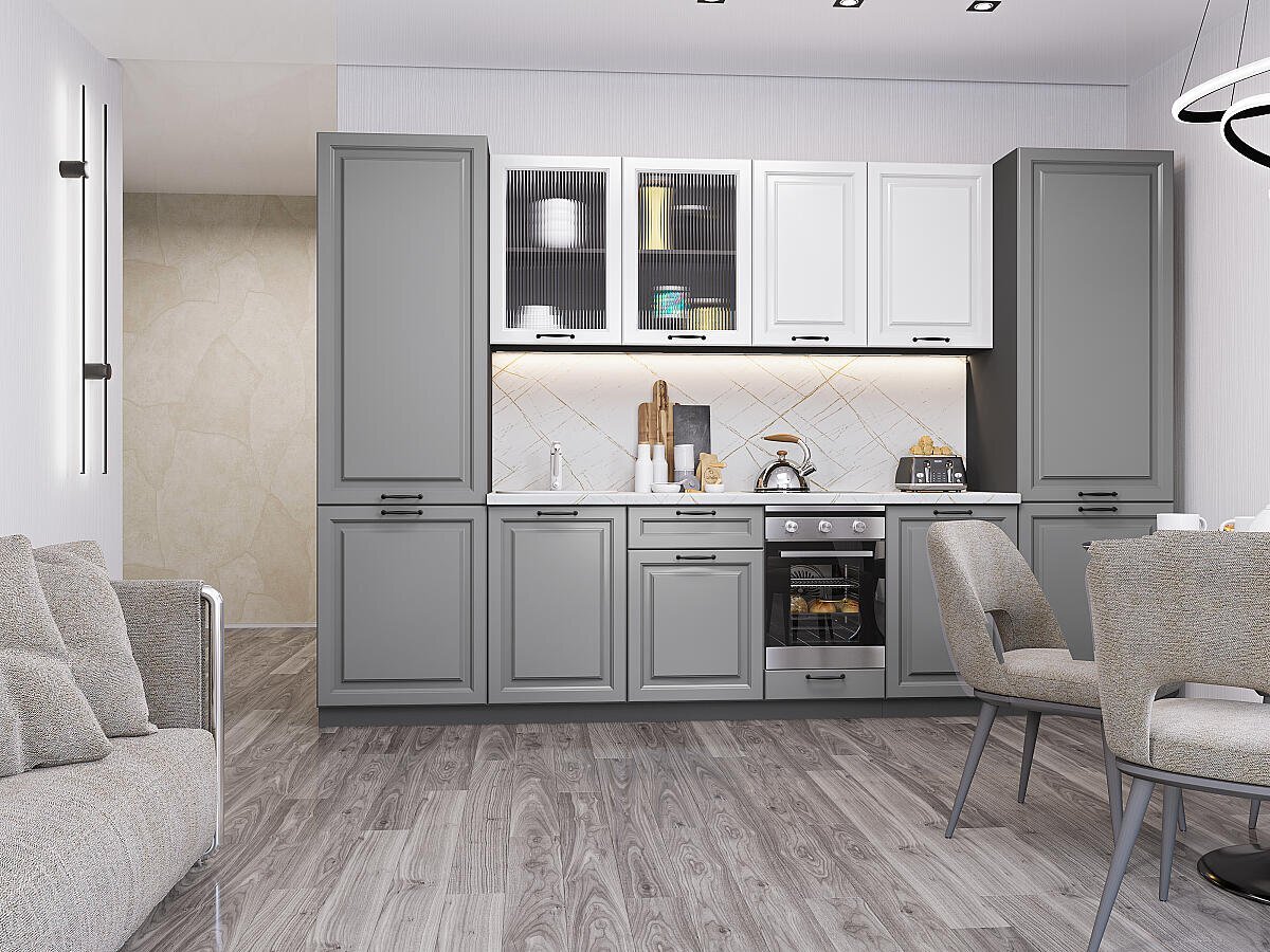 Прямая модульная кухня Ницца Royal-01 Blanco/Magnum - Graphite 2140*3150*600