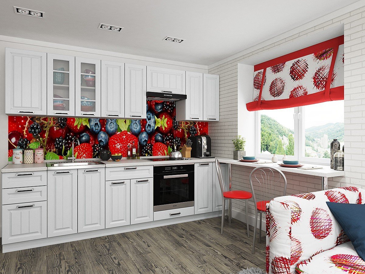 Прямая модульная кухня Прага-02 Белое дерево - Белый 2140*2800*600