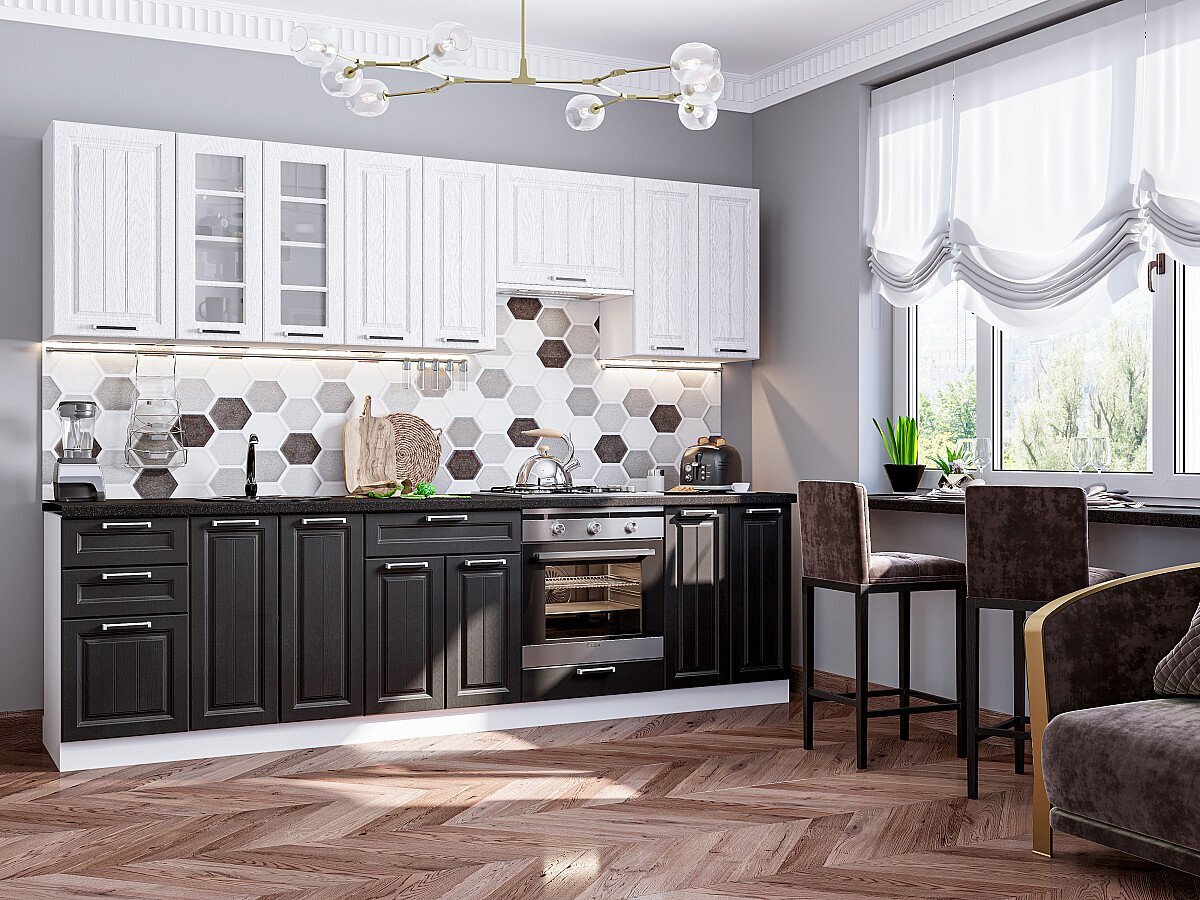 Прямая модульная кухня Прага-02 Белое дерево/Венге Премиум - Белый 2140*2800*600