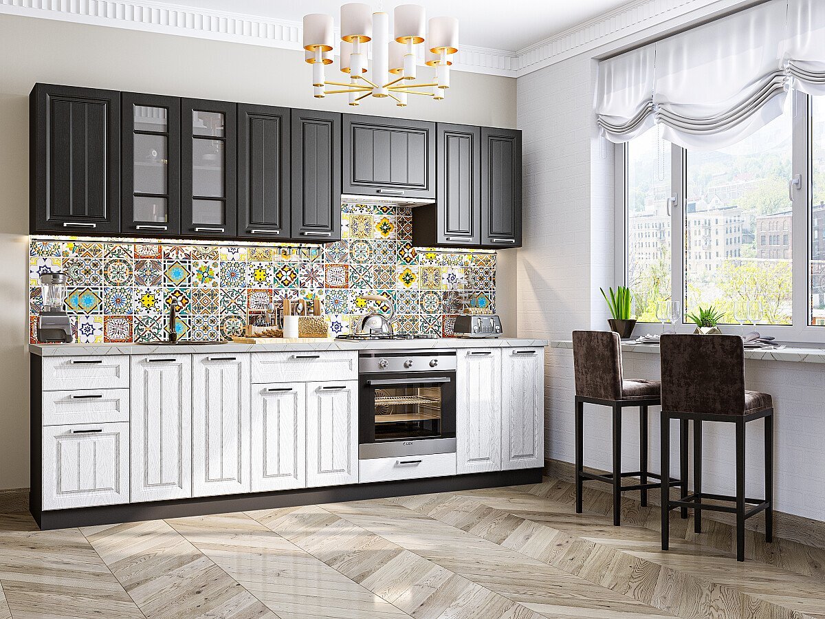 Прямая модульная кухня Прага-02 Венге Премиум/Белое дерево - Graphite 2140*2800*600