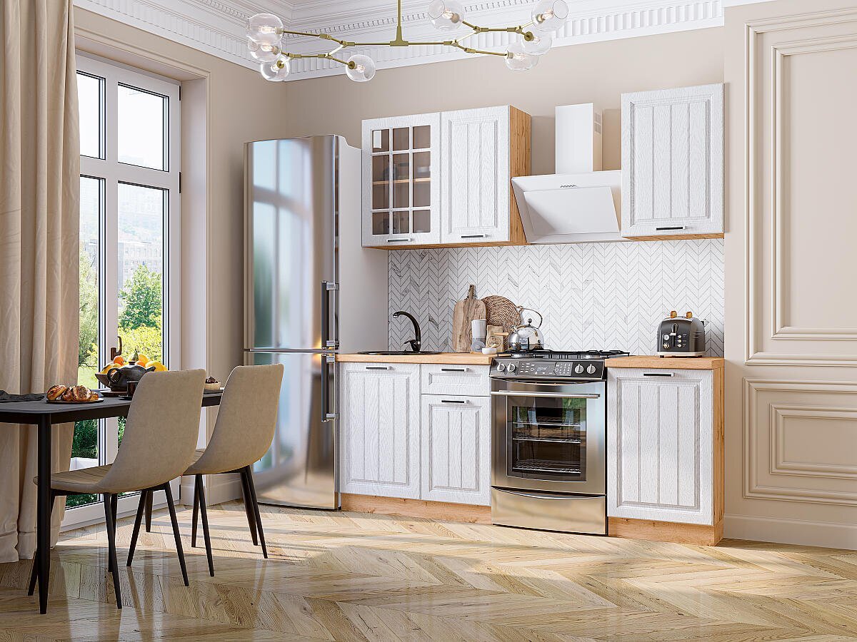 Прямая модульная кухня Прага-04 Белое дерево - Дуб Вотан 2140*1400*600