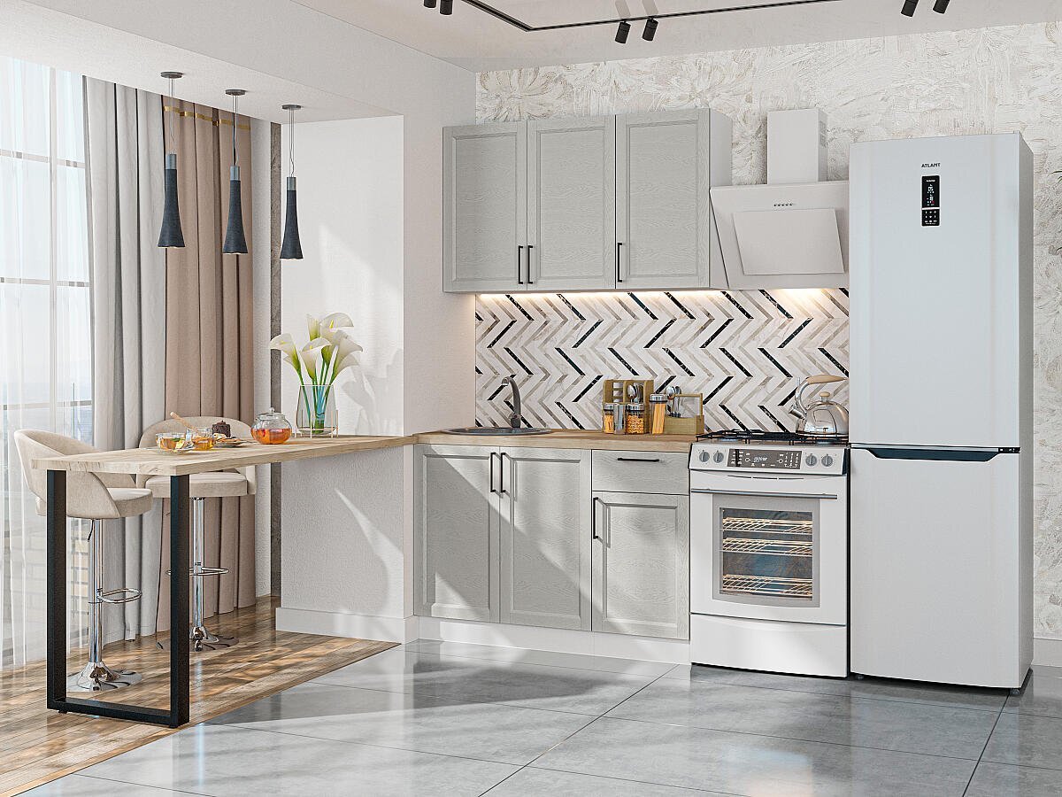 Прямая модульная кухня Сканди-05 Grey Silkwood - Белый 2140*1200*600