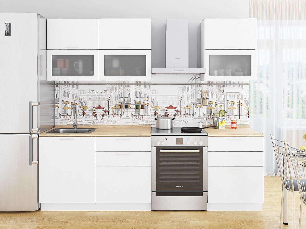 Прямая модульная кухня Валерия-М-01 Белый металлик - Белый 2140*1800*600