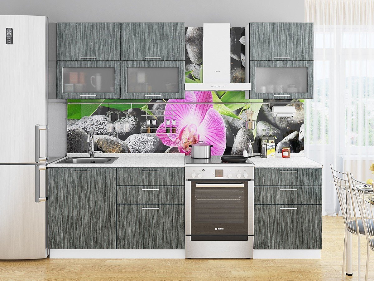 Прямая модульная кухня Валерия-М-01 Черный металлик дождь - Белый 2140*1800*600