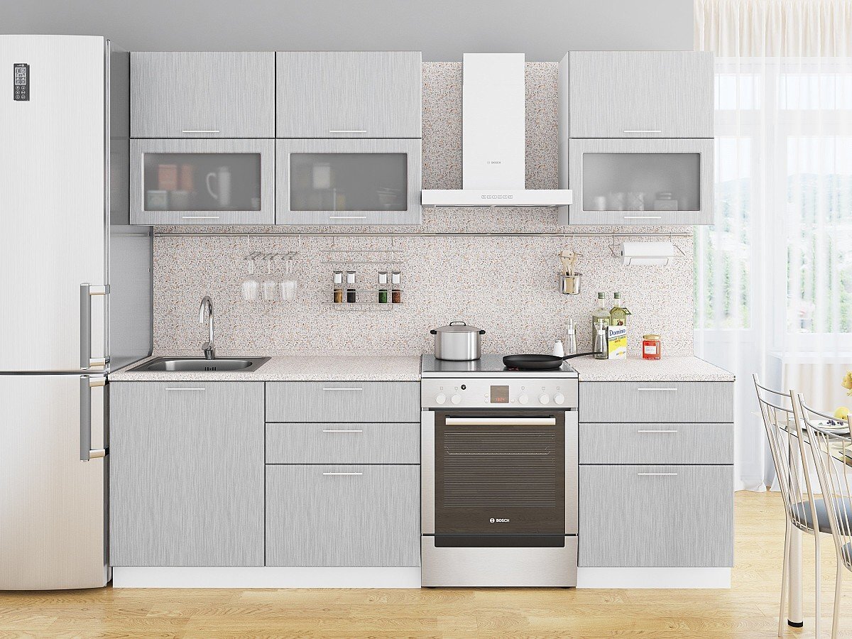 Прямая модульная кухня Валерия-М-01 Серый металлик дождь светлый - Белый 2140*1800*600