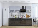 Прямая модульная кухня Валерия-М-01 Серый металлик дождь светлый/Черный металлик дождь - Graphite 2140*1800*600