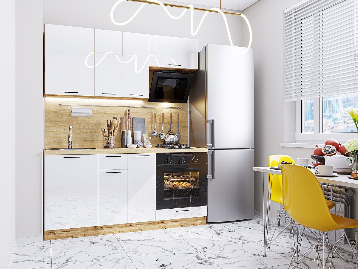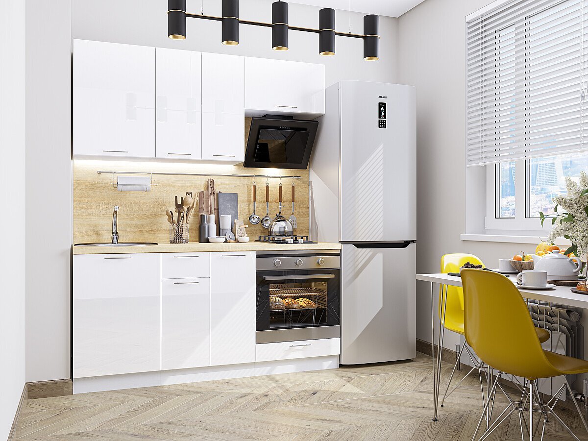 Прямая модульная кухня Валерия-М-06 Белый глянец - Белый 2140*1700*600