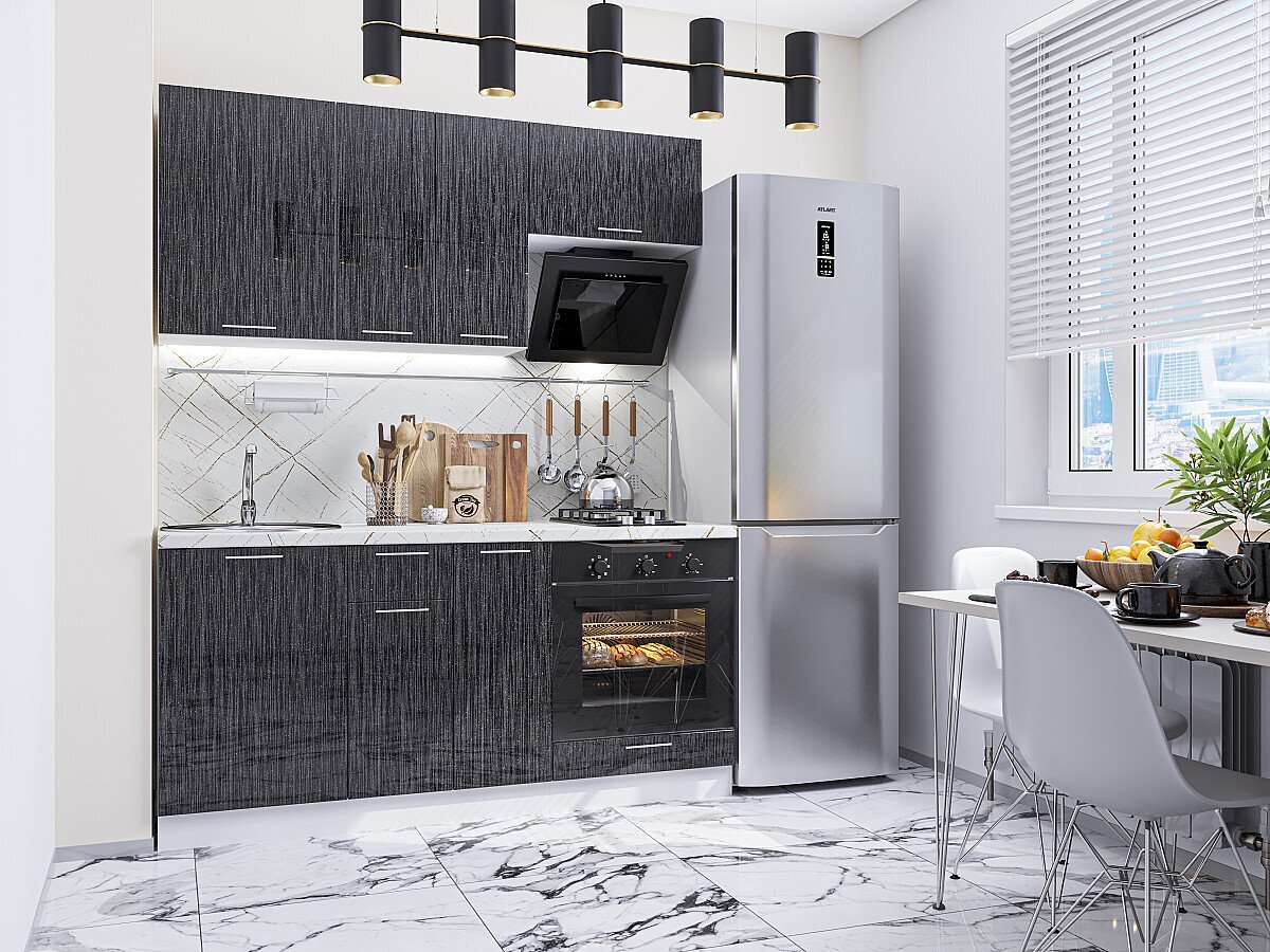 • Прямая модульная кухня Валерия-М-06 Черный металлик дождь - Дуб Вотан 2140*1700*600