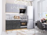 Вы можете купить "Прямая модульная кухня Валерия-М-06 Серый металлик дождь светлый/Черный металлик дождь - Дуб Вотан 2140*1700*600", оптом в нашем магазине, предложим цену с оптовой скидкой.