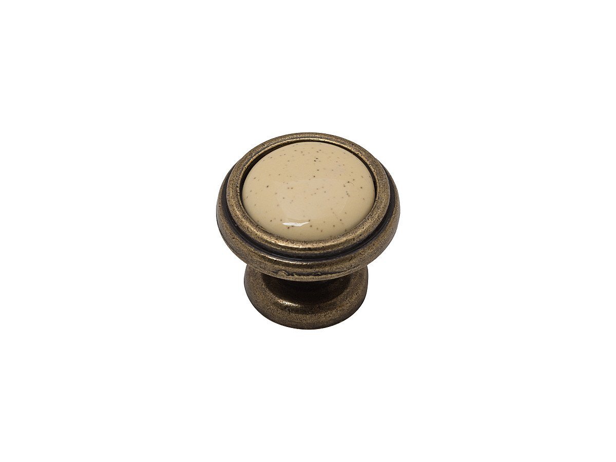 Ручка кнопка мебельная KF03-05 OAB Оксидированная бронза/Бежевый ЦАМ/Керамика