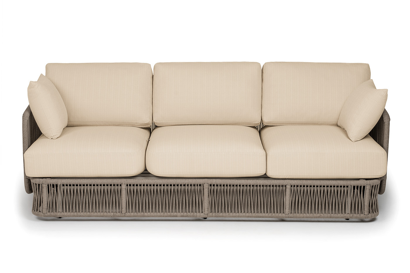"Альбано" диван 3-местный плетеный из роупа, каркас алюминий светло-серый (RAL7035) муар, роуп серый меланж круглый, ткань Mossle светло-бежевая