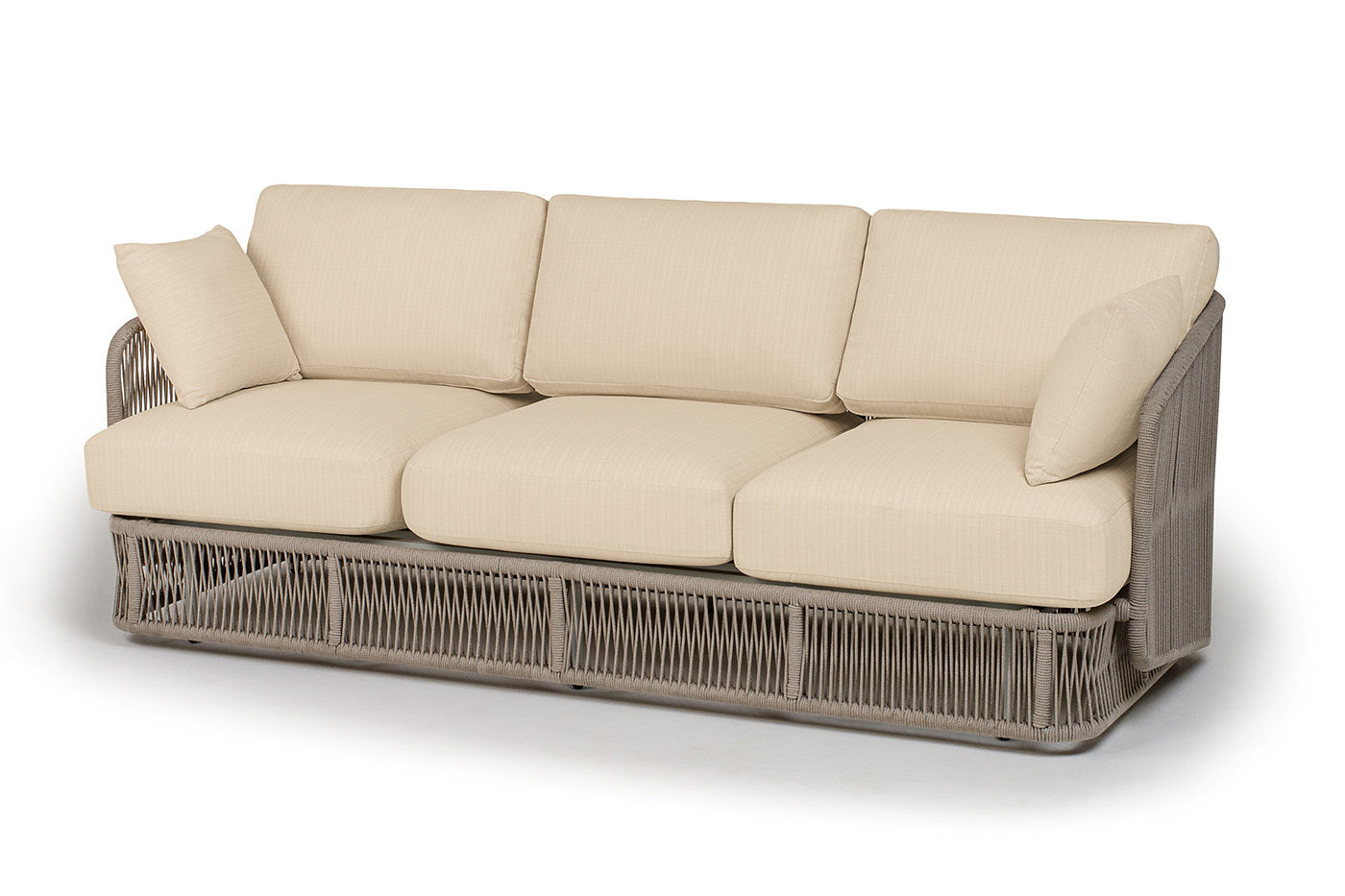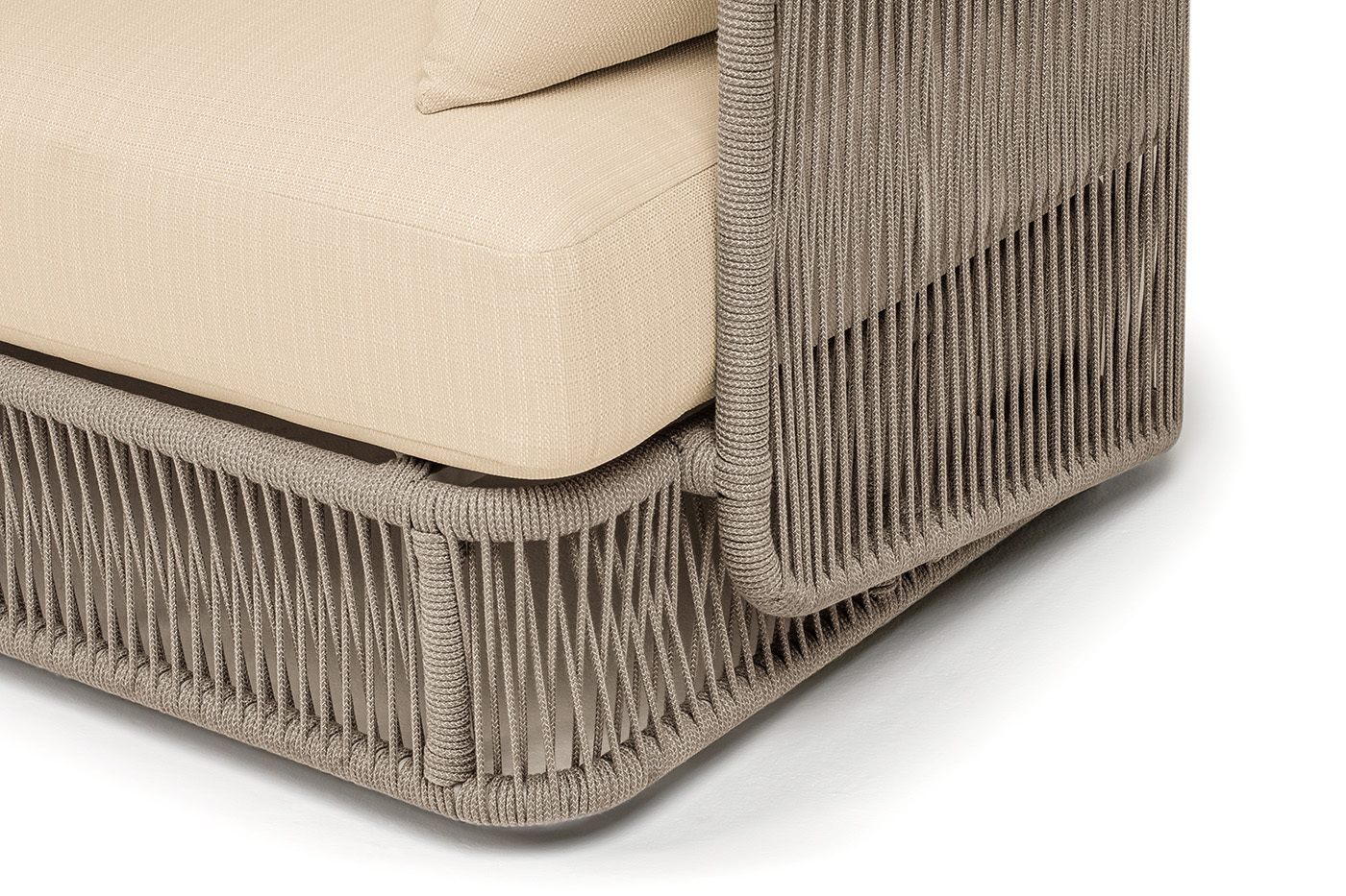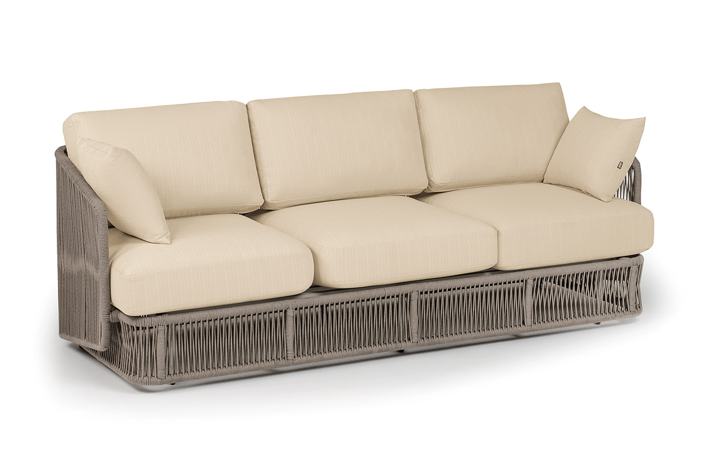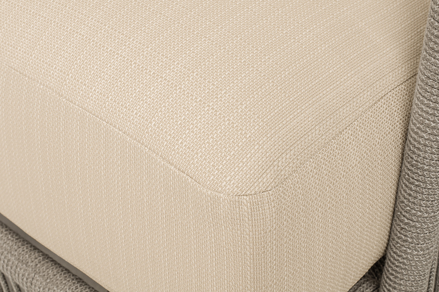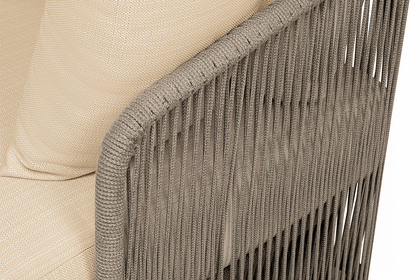 "Альбано" диван 3-местный плетеный из роупа, каркас алюминий светло-серый (RAL7035) муар, роуп серый меланж круглый, ткань Mossle светло-бежевая | |