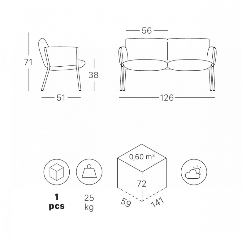 Дизайн: Alessandro Stabile. Семейство уличной мебели Brezza пополнилось двумя новыми моделями: лаунж-креслом и двухместным диваном. Оба унаследовали производственный подход от своего предшественника: мягкие подушки крепятся к каркасу без использования клея, кнопок, молний или липучек, что позволяет легко снимать чехлы и заменять их при необходимости, в соответствии с конструкционной предпосылкой, основанной на округлости. Мягкая и объемнаянабивка оставляет видимыми металлические ножки круглого сечения, которые придают дивану Brezza прочность и узнаваемость. В Brezza забота об экологии заключается в выборе материалов: ткани из переработанного материала, без использования клея, штабелируемые рамы минимального размера для транспортировки с последующим сокращением выбросов CO2. Особенности: Каркас выполнен из трубчатой сталиØ30мм с полиэстерным порошковым покрытием. Запатентованные съемныеподушки могут быть выполнены из тканей коллекций Acrisol (водо- и грязестойкий акрил),EcoSafe (огнестойкая органическая тканьиз переработанного полипропилена), Sunbrella (ткань из 50% переработанного акрила, огнестойкая, дышащая, водо- и грязестойкая, устойчивая к плесени, ультрафиолетовому излучению),imNativ (ткань из 90% регенерированного поплипропилена, гипоаллергенная, антиклещевая и бактериостатическая). Сиденье невероятно практично: достаточно простого жеста, чтобыснять обивку и заменить ее. Варианты сочетаний цвета каркаса и обивки можно выбрать из палитры. Данная модель предназначена для использования на летних верандах, террасах, фудкортах, а такжево внутреннем интерьере кафе, ресторанов. Поставляется в разобранном виде. Посмотреть каталог отделоки обивок. Посмотреть технические характеристики. Цена на сайте указана за модель с обивкой из ткани коллекции Sunbrella.Для уточнения всех возможных вариантов материала и цвета данного изделия обращайтесь к нашим менеджерам.Характеристики