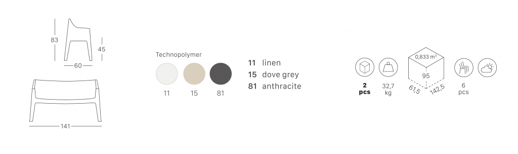 Пластиковый диван Coccolona от дизайнеров Centro Stile Scab, идеально подходящийдля заведений сферы Contract и использования на открытом воздухе. Благодаря инновационному дизайну это также идеальное сиденье для жизни. Диван доступенв широкой цветовой гамме. Особенности: Диван выполнениз очень прочногои устойчивоготехнополимера. Нескользящие ножки. Возможность штабелирования для максимального удобства хранения. Данная модель предназначенадля использования на летних площадках, террасах, фудкортах, а также во внутреннем интерьере кафе, ресторанов. Открыть технические характеристики.Характеристики