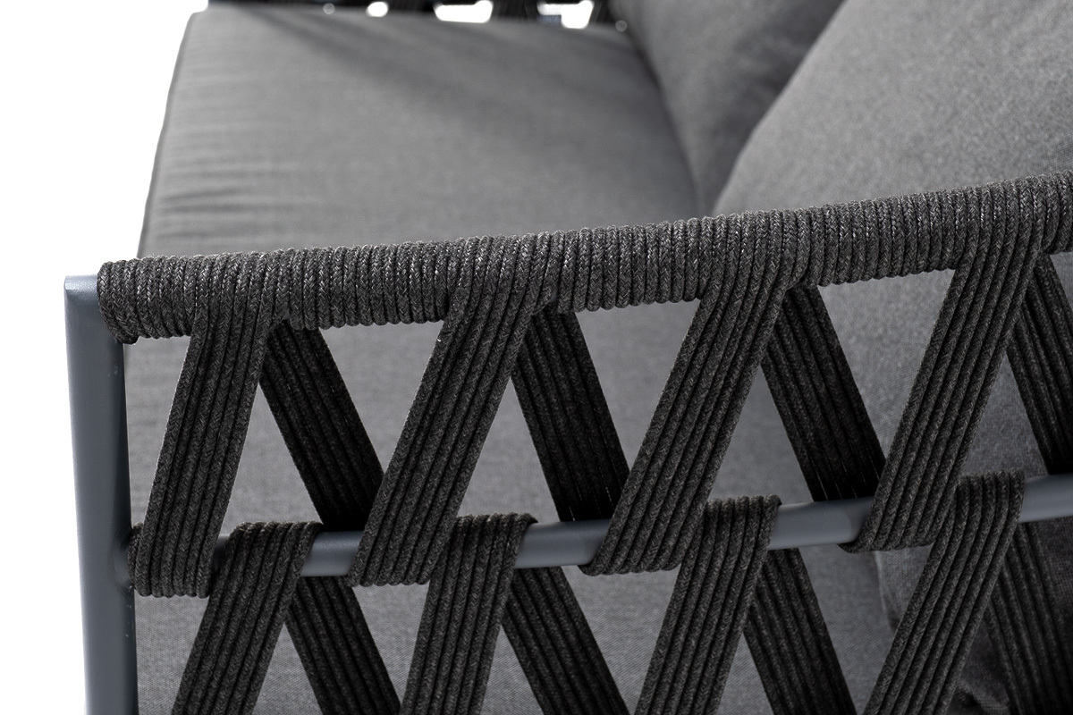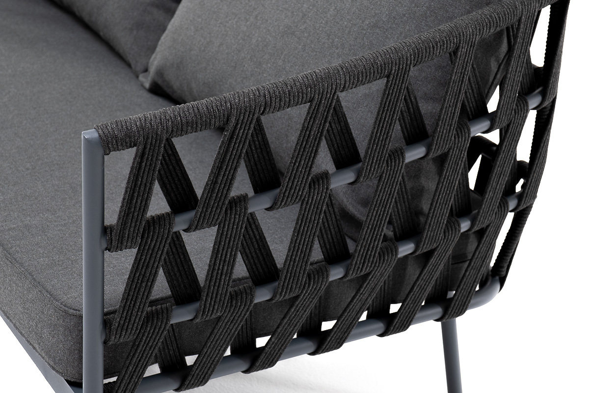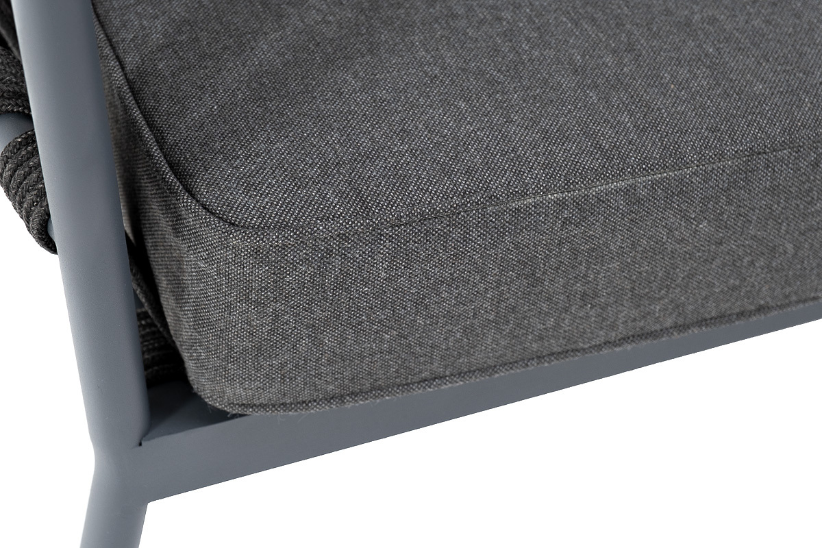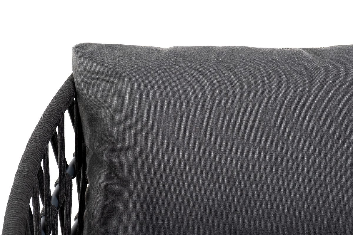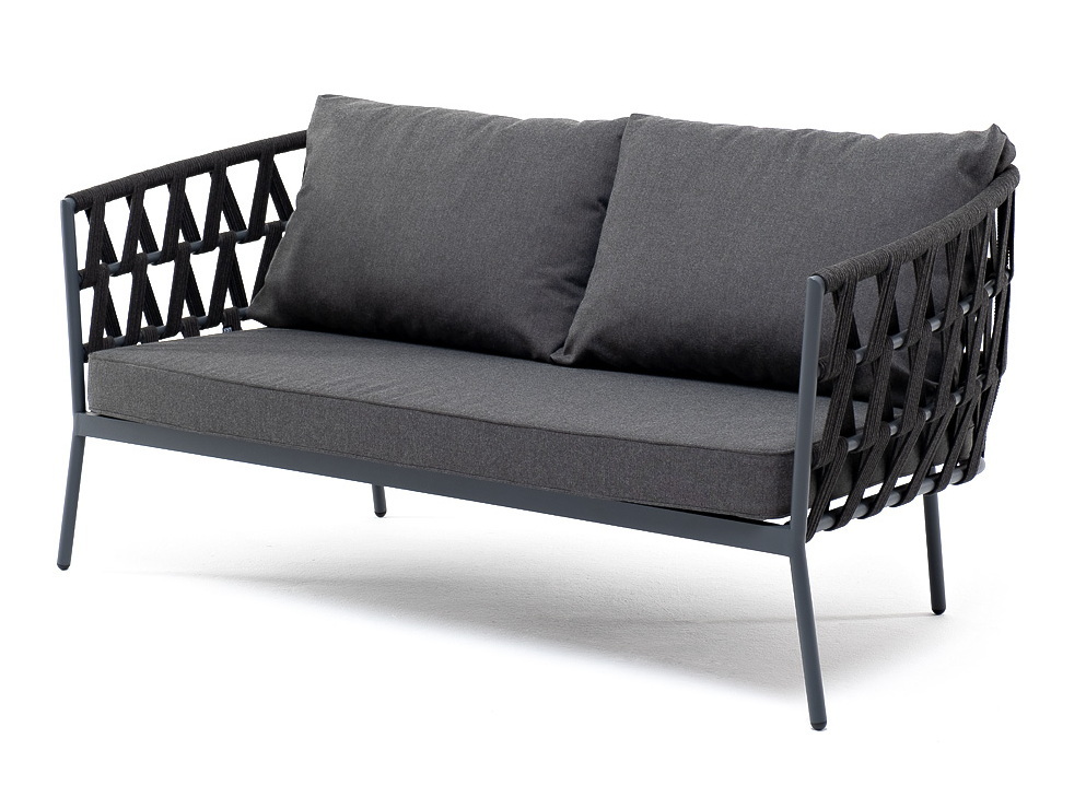 "Диего" диван 2-местный плетеный из роупа, каркас алюминий темно-серый (RAL7024) муар, роуп темно-серый круглый, ткань темно-серая 027 | |