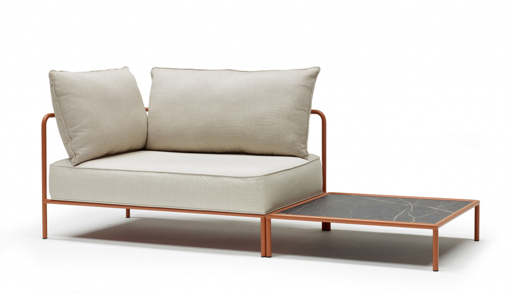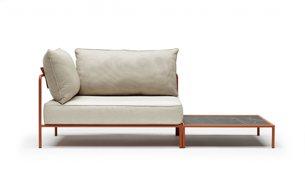 Дизайн: Meneghello Paolelli. Flap– это коллекция модульной мягкой мебели, в которой элементы объединены по композиции с опорными поверхностями. Отличительной частью конструкции являютсяэлементы в спинке, напоминающие по форме закрылки самолета, с функцией поддержки задних подушек и способные поворачиваться вокруг оси примерно на 15 градусов: это позволяет подушке иметь разный наклон для достижения максимально возможной степени комфорта. МодулиFlap подходят для различных условий использования как в жилом, так и в контрактном секторах. Обивка подушекпредлагается в тщательно подобранных различных текстурах, чтобы гармонично вписаться в классическую или современную обстановку на открытом воздухе. Подушки выполнены из акриловой ткани и предназначены для использования на улице. Дополнением к элементам служит приставной кофейный столик с окрашенной стальной рамой и столешницей из компакт-ламината HPL. Особенности: Каркас выполнен из трубчатой стали с полиэстерным порошковым покрытием. Съемная подушка сиденья с чехлом на молнии. Набивка: недеформируемый пенополиуретан (плотность 25 кг/м3), лист полиэстерного волокна (плотность 500 г/м2), покрытый 100% водоотталкивающей полиэфирной полиэстерной SprayTest в сочетании с полиэстерным волокном (плотность 200 г/м2). Нескользящее дно подушки. Съемные подушки спинкис чехлами на молнии. Набивка: штапельный полиэстер, покрытый 100% водоотталкивающей полиэстерной тканью SprayTest в сочетании с полиэстерным волокном (плотность 200 г/м2) Обивка подушек может бытьвыполненаиз тканей коллекций Acrylic (водо- и грязестойкий акрил), Acrisol (водо- и грязестойкий акрил), Agora (устойчивый к плесени, ультрафиолетовому излучению,воздухопроницаемый акрил), Sunbrella (огнестойкий, дышащий, водо- и грязестойкий, устойчивыйк плесени иультрафиолетовому излучению акрил). Варианты сочетаний цвета каркаса и обивки можно выбрать из палитры. Данная модель предназначена для использования на летних верандах, террасах, фудкортах, а такжево внутреннем интерьере кафе, ресторанов. Посмотреть каталог отделоки обивок. Посмотреть технические характеристики. Цена на сайте указана за модель с каркасом терракотового цвета и обивкой кремового цвета (сиденье из ткани Agora, спинка из тканиAcrylic).Для уточнения всех возможных вариантов материала и цвета данного изделия обращайтесь к нашим менеджерам.Характеристики