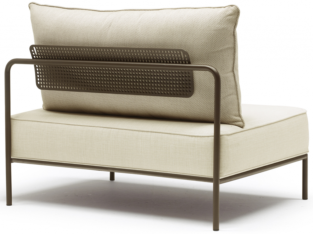 Дизайн: Meneghello Paolelli. Flap– это коллекция модульной мягкой мебели, в которой элементы объединены по композиции с опорными поверхностями. Отличительной частью конструкции являютсяэлементы в спинке, напоминающие по форме закрылки самолета, с функцией поддержки задних подушек и способные поворачиваться вокруг оси примерно на 15 градусов: это позволяет подушке иметь разный наклон для достижения максимально возможной степени комфорта. МодулиFlap подходят для различных условий использования как в жилом, так и в контрактном секторах. Обивка подушекпредлагается в тщательно подобранных различных текстурах, чтобы гармонично вписаться в классическую или современную обстановку на открытом воздухе. Подушки выполнены из акриловой ткани и предназначены для использования на улице. Дополнением к элементам служит приставной кофейный столик с окрашенной стальной рамой и столешницей из компакт-ламината HPL. Особенности: Каркас выполнен из трубчатой стали с полиэстерным порошковым покрытием. Съемная подушка сиденья с чехлом на молнии. Набивка: недеформируемый пенополиуретан (плотность 25 кг/м3), лист полиэстерного волокна (плотность 500 г/м2), покрытый 100% водоотталкивающей полиэфирной полиэстерной SprayTest в сочетании с полиэстерным волокном (плотность 200 г/м2). Нескользящее дно подушки. Съемная подушка спинкис чехлом на молнии. Набивка: штапельный полиэстер, покрытый 100% водоотталкивающей полиэстерной тканью SprayTest в сочетании с полиэстерным волокном (плотность 200 г/м2) Обивка подушек может бытьвыполненаиз тканей коллекций Acrylic (водо- и грязестойкий акрил), Acrisol (водо- и грязестойкий акрил), Agora (устойчивый к плесени, ультрафиолетовому излучению,воздухопроницаемый акрил), Sunbrella (огнестойкий, дышащий, водо- и грязестойкий, устойчивыйк плесени иультрафиолетовому излучению акрил). Варианты сочетаний цвета каркаса и обивки можно выбрать из палитры. Данная модель предназначена для использования на летних верандах, террасах, фудкортах, а такжево внутреннем интерьере кафе, ресторанов. Посмотреть каталог отделоки обивок. Посмотреть технические характеристики. Цена на сайте указана за модель с каркасом в отделке мокко и обивкой кремового цвета (сиденье из ткани Agora, спинка из тканиAcrylic).Для уточнения всех возможных вариантов материала и цвета данного изделия обращайтесь к нашим менеджерам.Характеристики