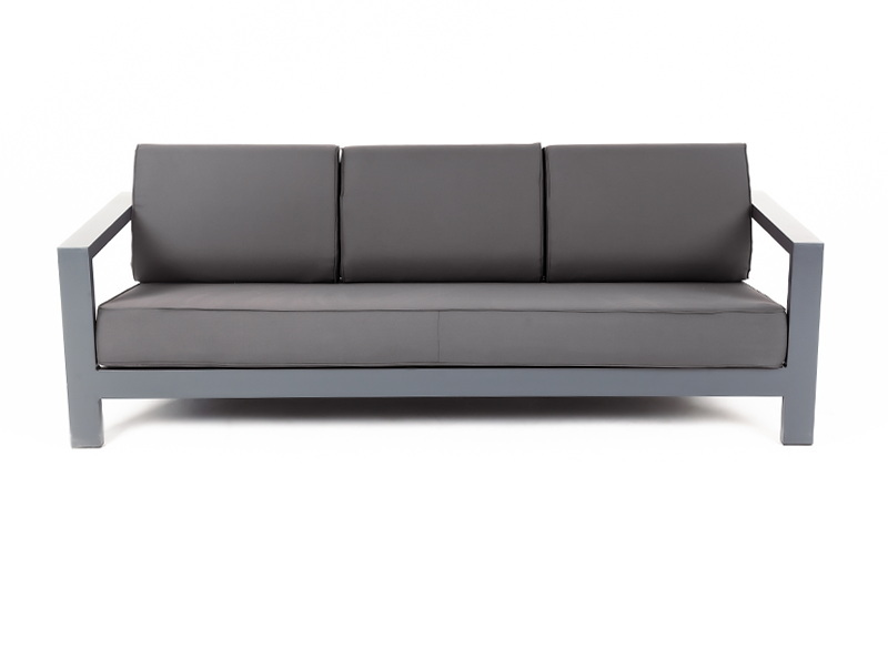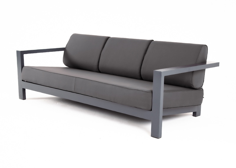 "Гранада" диван 3-местный, каркас алюминий темно-серый (RAL7024) шагрень, ткань темно-серая 027