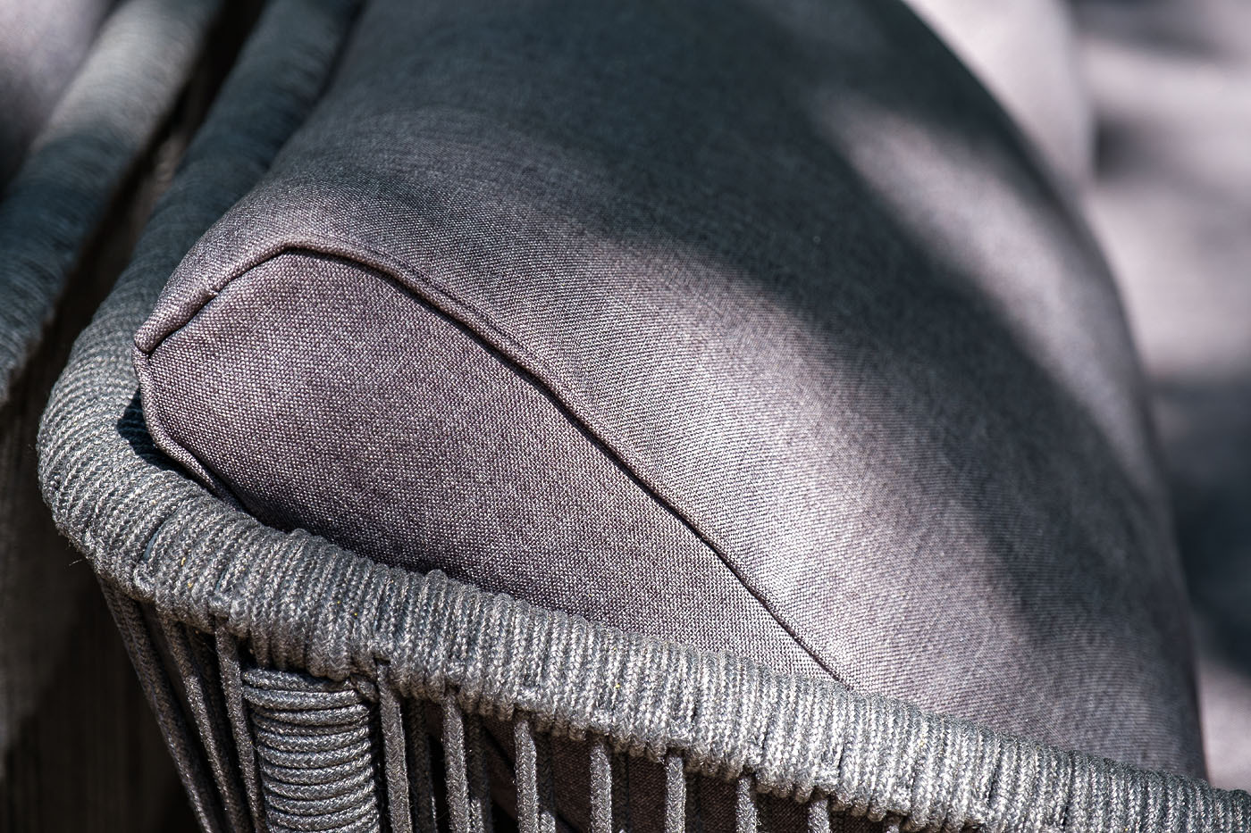 "Канны" диван 2-местный плетеный из роупа, каркас алюминий темно-серый (RAL7024) муар, роуп темно-серый круглый, ткань темно-серая 027 | |