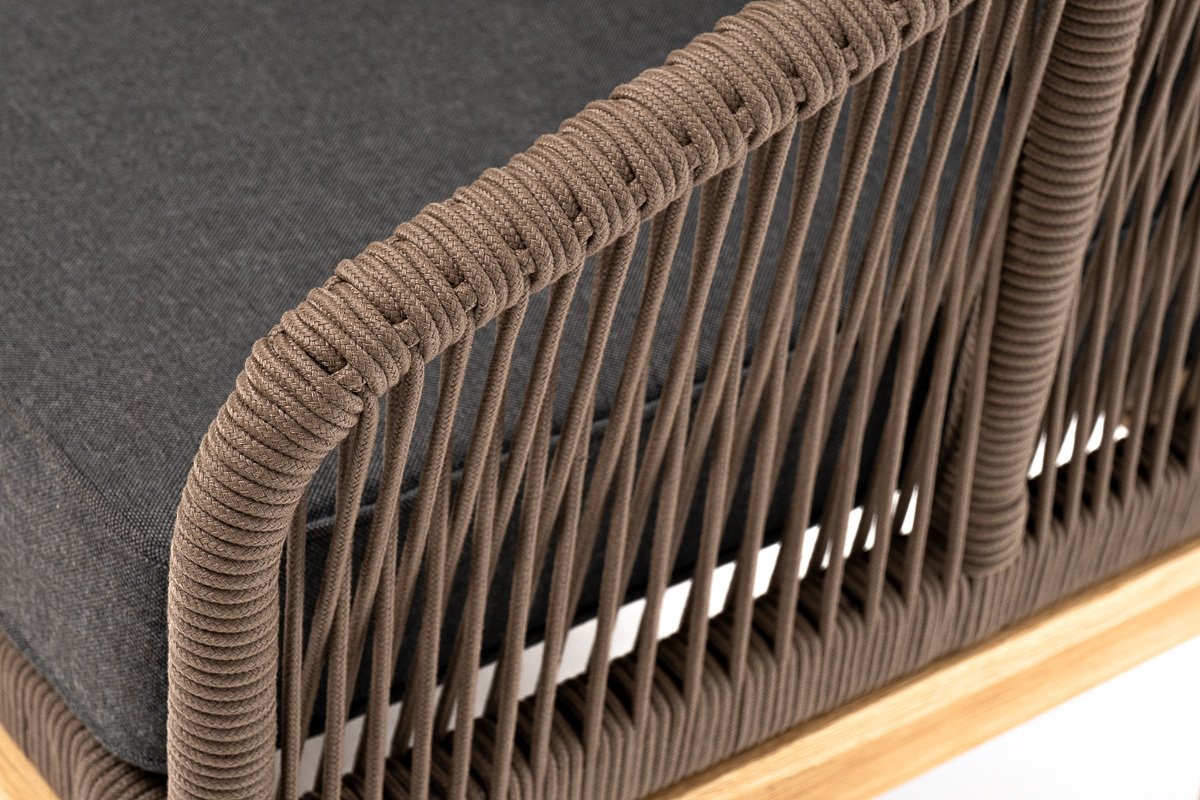 "Канны" диван 2-местный плетеный из роупа, основание дуб, роуп коричневый круглый, ткань темно-серая 027