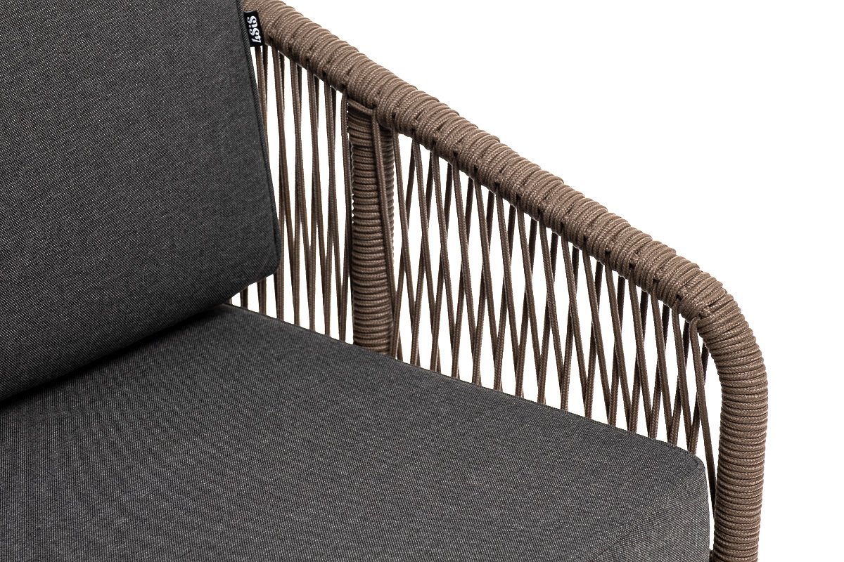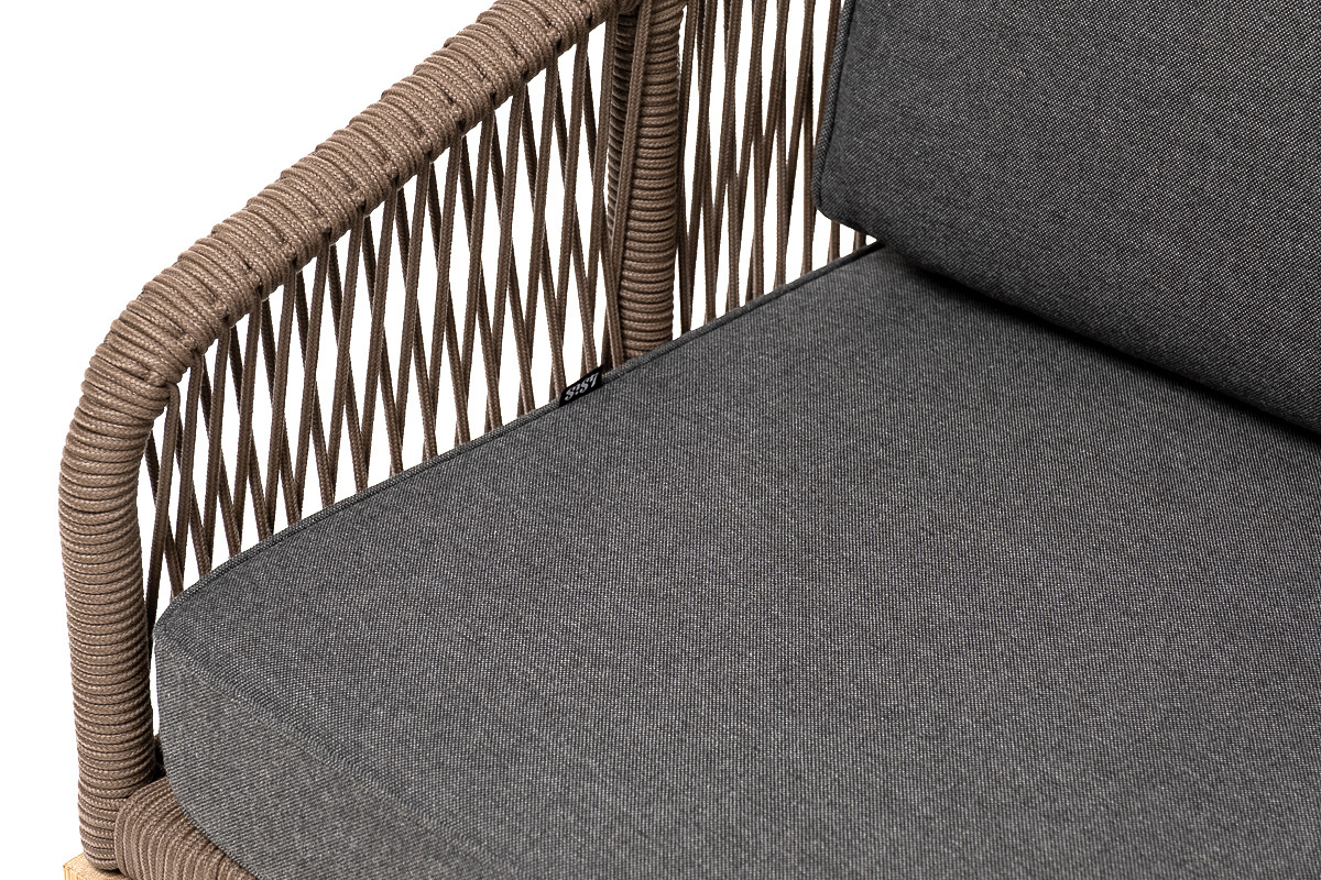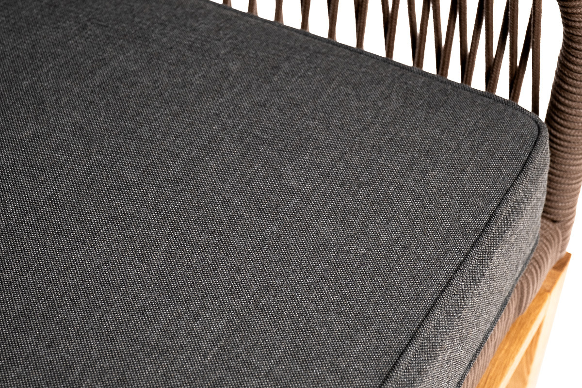 "Канны" диван 2-местный плетеный из роупа, основание дуб, роуп коричневый круглый, ткань темно-серая 027 | |