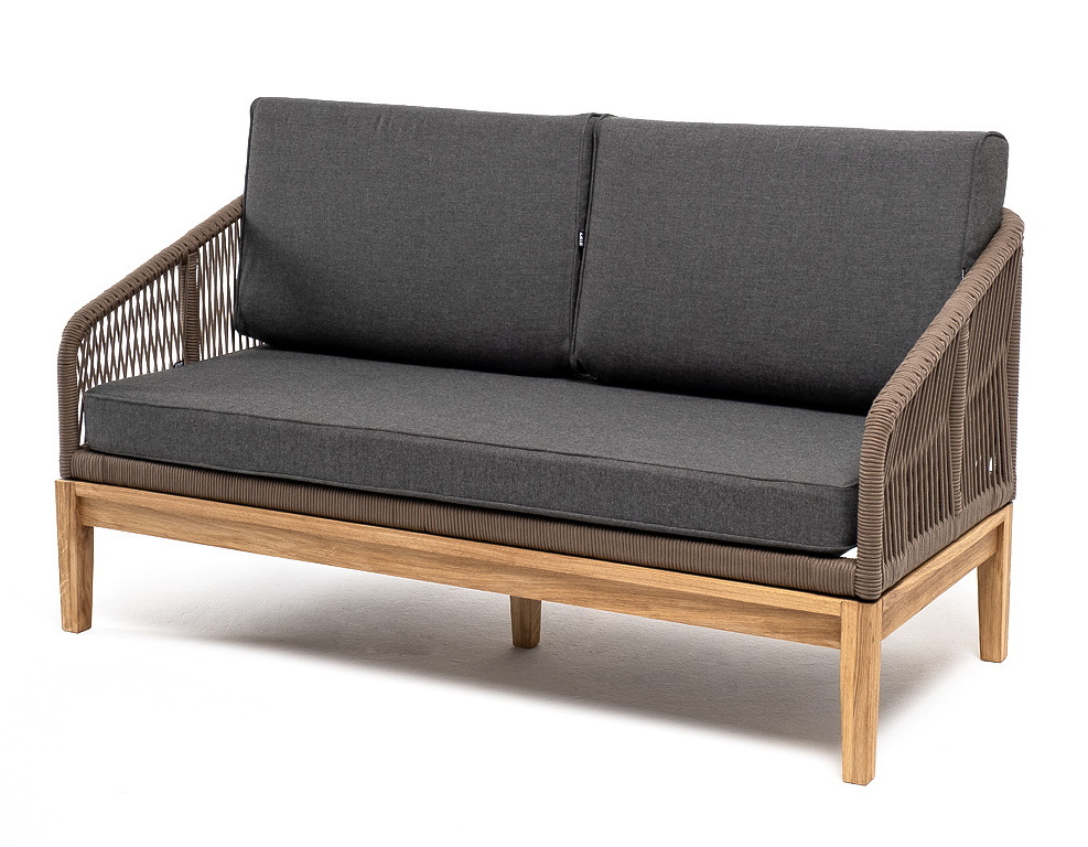 "Канны" диван 2-местный плетеный из роупа, основание дуб, роуп коричневый круглый, ткань темно-серая 027 | |