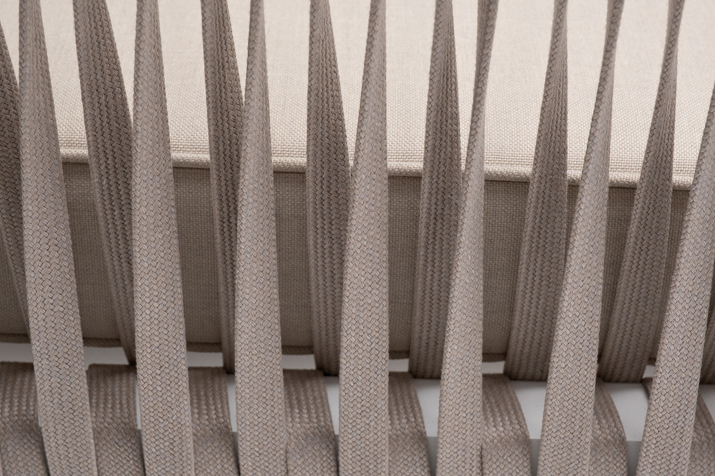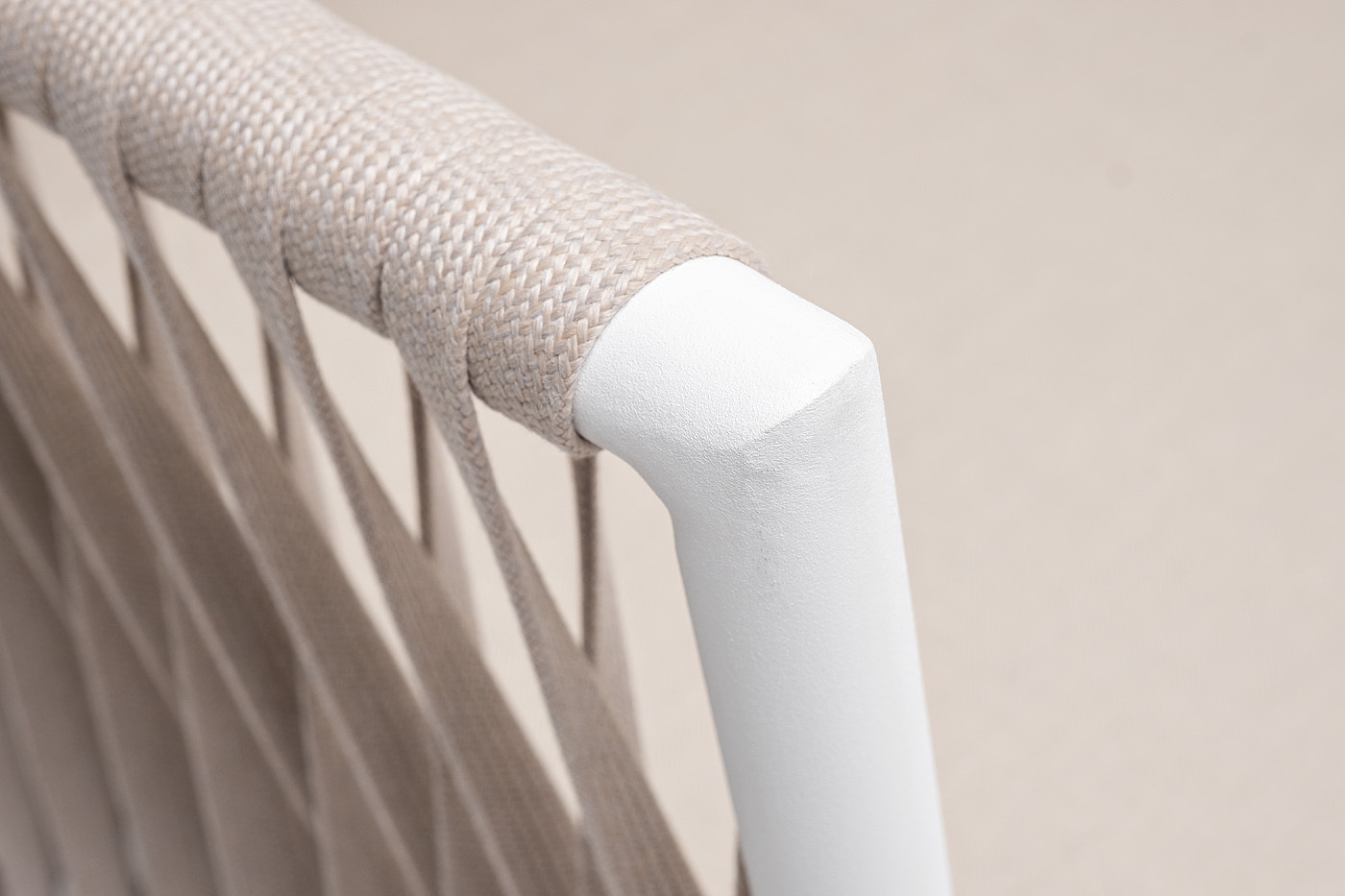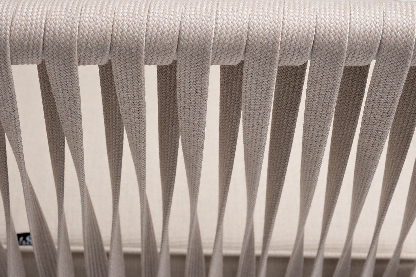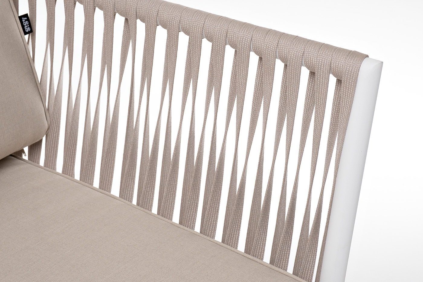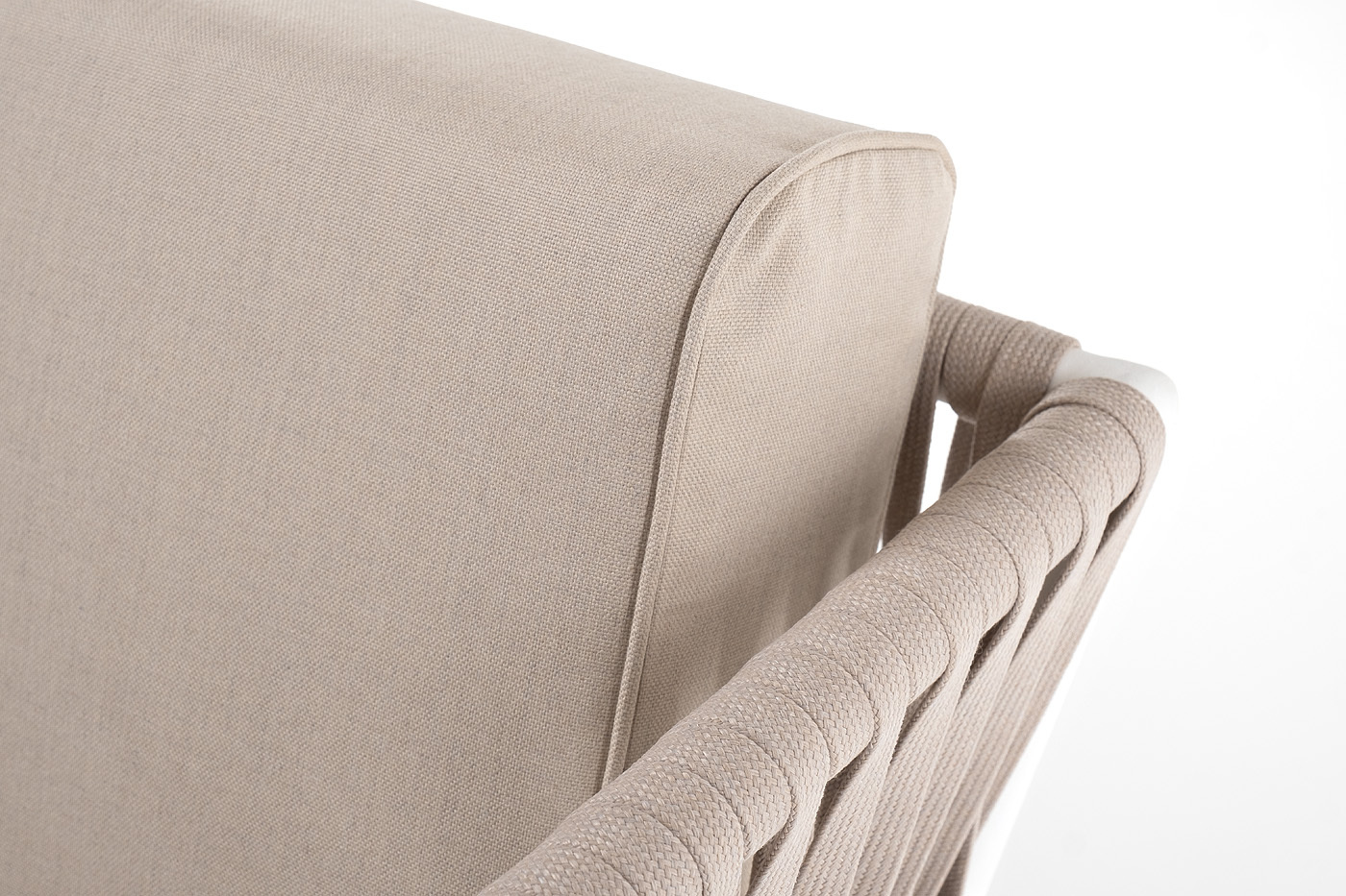 "Касабланка" диван 2-местный плетеный из роупа, каркас алюминий белый муар, роуп бежевый 20мм, ткань бежевая 15052