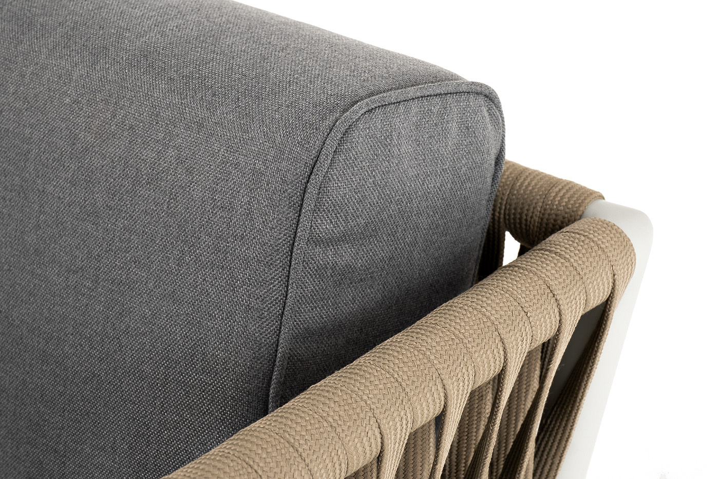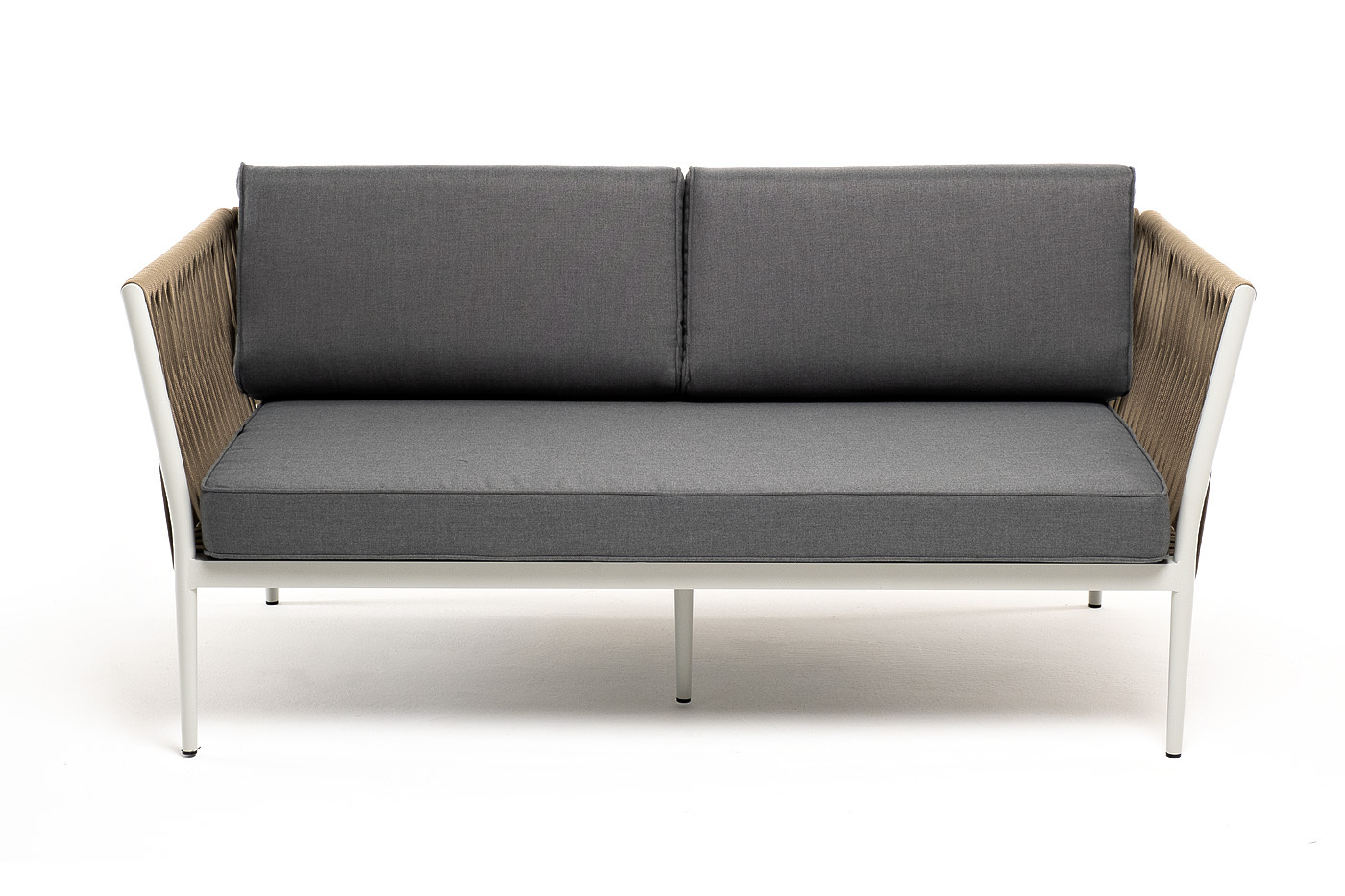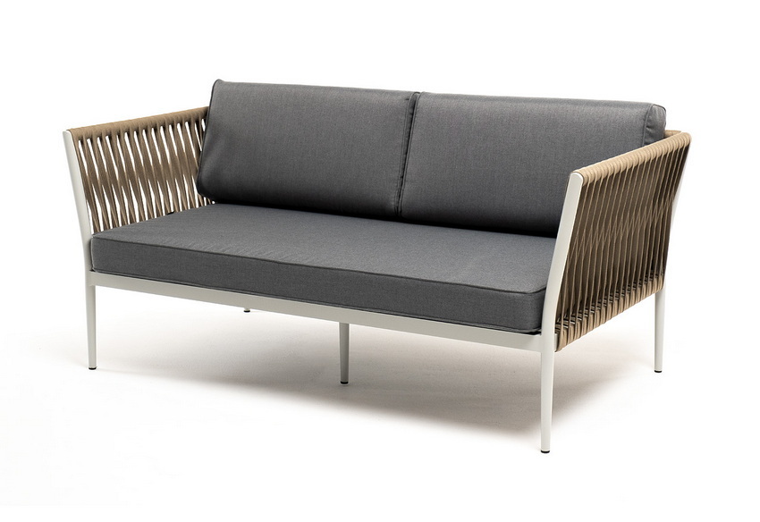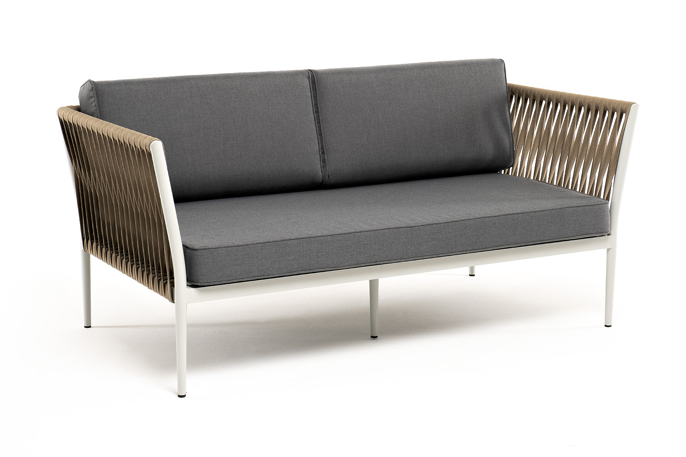 "Касабланка" диван 2-местный плетеный из роупа, каркас алюминий светло-серый (RAL7035) муар, роуп серо-коричневый 23мм, ткань серая 017