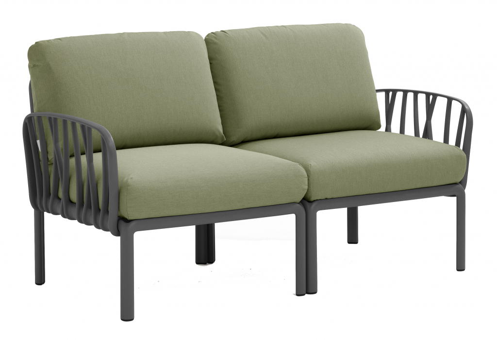 Дизайн: Raffaello Galiotto. На выставке Salone del Mobile 2018 в Милане Nardi представили новую коллекцию модульной мебели Komodo, куда входят различные модульные элементы, благодаря чему можно создавать различные комбинации. Модули Komodo выполнены из стеклопластика, имеют складные спинки и боковины, съемные подушки, благодаря чему можно составить диван любой длины, превратить отдельные модули в столики или пуфы. Ветвистая переплетенная конструкция вытекает из строгого геометрического дизайна, который также включает инновационную систему соединения между спинкой и сиденьем, осуществленную с помощью простого вращения. Последнее решение позволяет избежать непривлекательных стыков и открытых отверстий и поддерживает эстетическую гармонию плетенной конструкции на сиденье и спинке. Особенности: Размер спинки: 685х545 мм. Вес спинки: 2 кг. Размер подлокотника: 675х385 мм. Вес подлокотника: 1.7 кг. Размер подушки на спинку: 710х450х220 мм. Вес подушки: 1.3 кг. Модель выполнена из перерабатываемого материала - стеклопластика (полипропилен, стекловолокно). Возможные цвета каркаса: белый (bianco), антрацит (antracite), тортора (tortora), агава (agave). Возможные цвета подушек из акрила: серый (grigio), розовый (rosa quarzo). Возможные цвета подушек из ткани Sunbrella: синий (adriatic), лед (ghiaccio), авокадо (avocado), джунгли (giungla). Возможные цвета подушек из ткани Sunbrella Laminato: холст (canvas). Возможные цвета подушек из ткани TECH: панама (panama). Сиденья можно закрепить с одной стороны, а спинки и подлокотники можно прикрепить с любой стороны. Нескользящие ножки. Матовая отделка. Изделие сертифицировано CATAS. Изделие устойчиво к воздействию УФ-лучей. В состав входят: Модуль правый, размер: 720х780х880 мм – 1 шт. Модуль левый, размер: 720х780х880 мм – 1 шт. Данные производителя об упаковке: Модуль правый: картонная упаковка, размер: 730х540х735 мм, объем: 0.29 м³, количество в упаковке: 1 шт. Модуль левый: картонная упаковка, размер: 730х540х735 мм, объем: 0.29 м³, количество в упаковке: 1 шт. Открыть технические характеристики. Открыть инструкцию по сборке. Цена на сайте указана за модель с каркасом цвета антрацит и подушками из ткани Sunbrella. Цены на другие модели Вы можете уточнить у менеджеров. Можно докупать модули и корректировать размеры мебели под необходимые размеры. Элементы серии Кomodo комбинируются между собой в любой последовательности, создавая индивидуальные решения для Вашего интерьера.Характеристики
